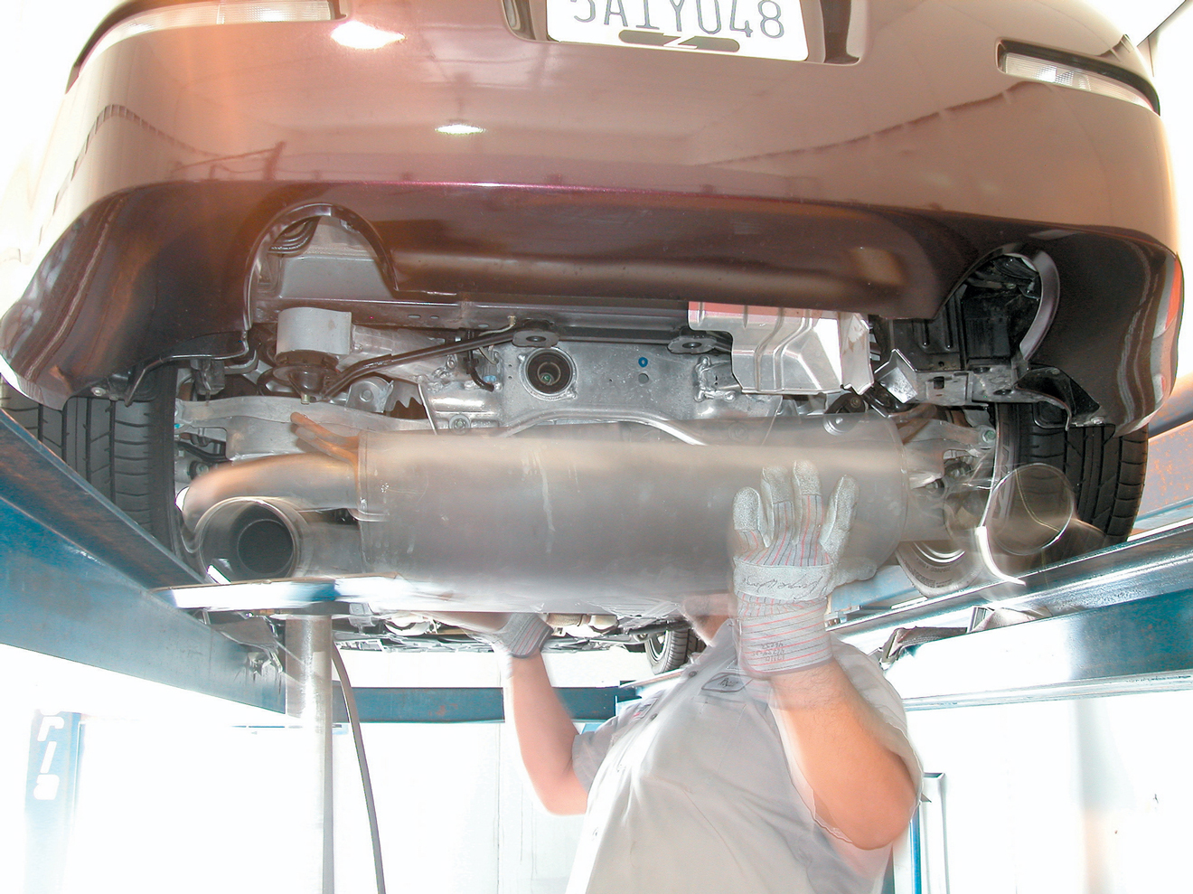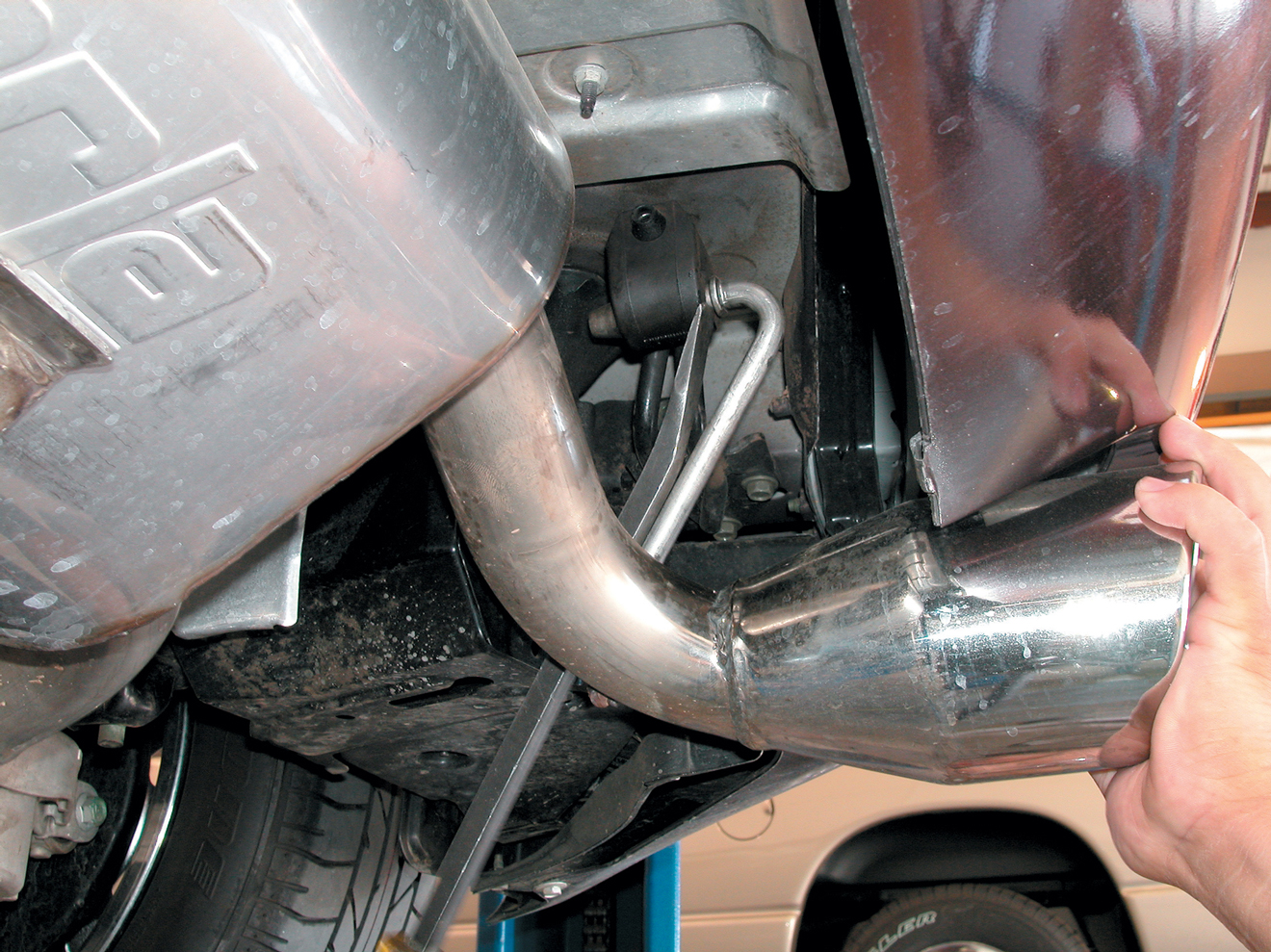 While relatively small in size, the stock exhaust system is quite heavy. Even though the new Borla system is made up of more components, it’s surprisingly close in overall weight.