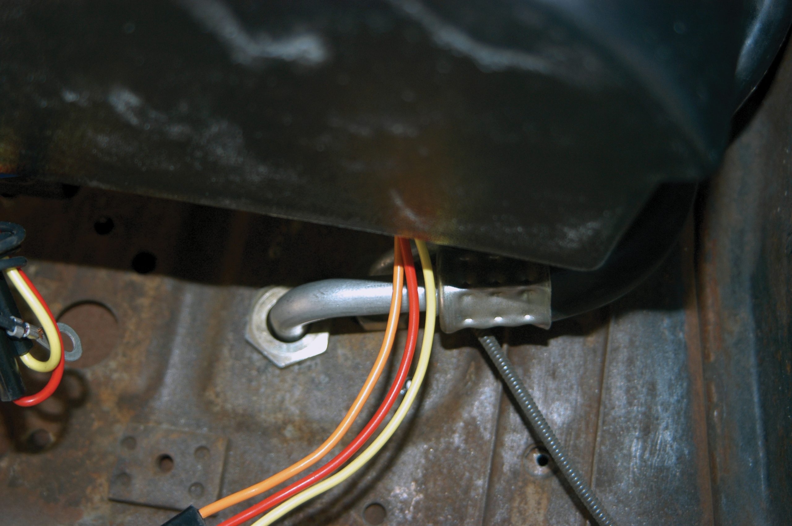 After the holes were drilled, large grommets were installed in the firewall as a safety precaution.