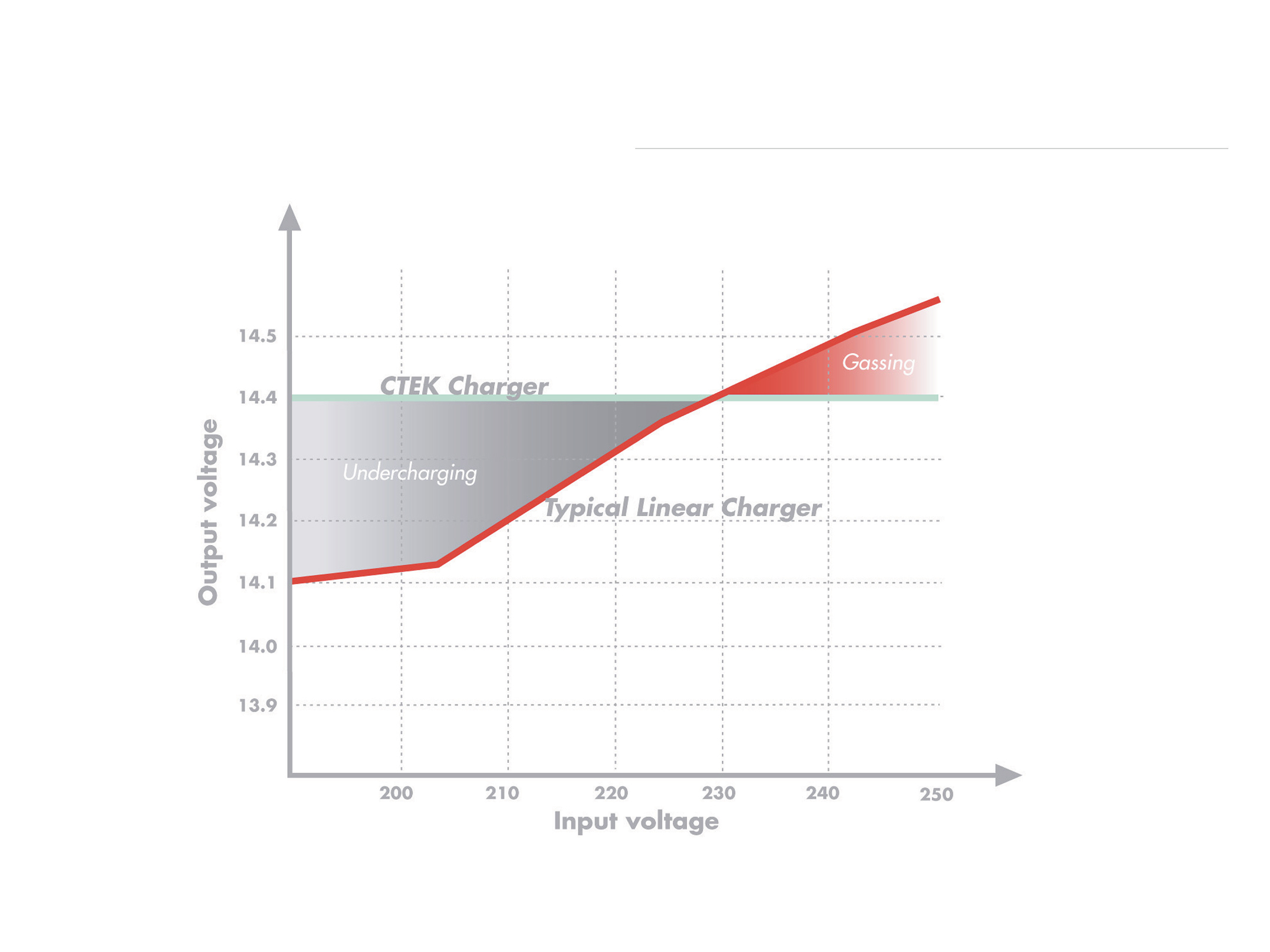 CTEK says that average is best. As in life, too much or too little of anything may not be best, and when it comes to battery chargers, you have two elements pulling in different directions. For example, a wet battery can withstand a lot of punishment, and you always have the option of topping it off with water. On the other hand, a pure lead AGM battery can withstand extremely high loading current. Modern chargers with more control and cleaner, direct current also widen the permitted field of application. An old rule of thumb claims that the recommended size of the charger can be worked out by multiplying the capacity of the battery by 0.1 to give the recommended current in amperes. However, with a more modern CTEK charger, you can charge with a much more powerful model, as the current is clean and the voltage is well-controlled. Charging with a current that is four times greater than the old recommendation is normally no problem with a CTEK charger.