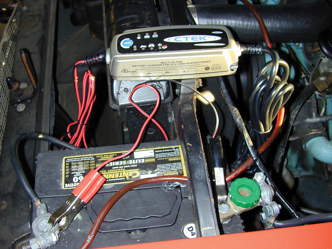 While it’s not up to us to tell you what the ideal battery charger is for your automotive and recreational use, let’s begin with CTEK’s Multi US 3300 battery charger, which just happens to be the best-selling charger in Europe today. The unit is not only designed for battery maintenance of any 12-volt lead-acid battery, but the 3300 also provides quick recharging, making it fast and flexible. Along with its switch-mode technology, a four-cycle intelligent process for perfect battery maintenance and charging, this unit is virtually foolproof to connect, regardless of where the battery is located. The four-cycle intelligent process involves four things: 1) desulfation, which wakes up a sulfated or undercharged battery; 2) bulk charge, which begins charging at 0.8/3.3 amps; 3) absorption, which applies peak charge at 14.4/14.7 volts until the battery is fully charged and 4) pulse, which sends out current pulses for charge maintenance.