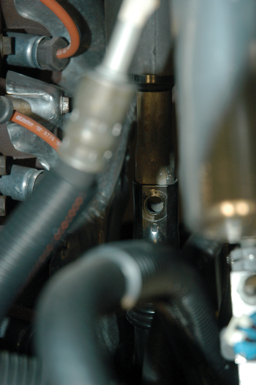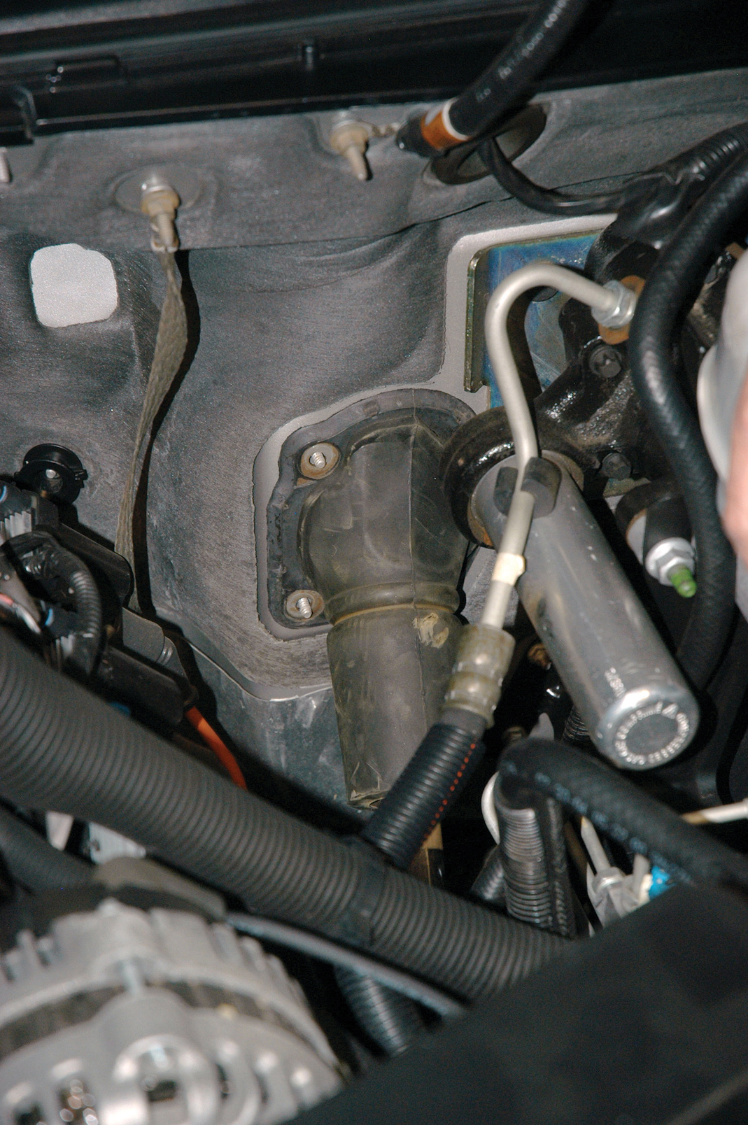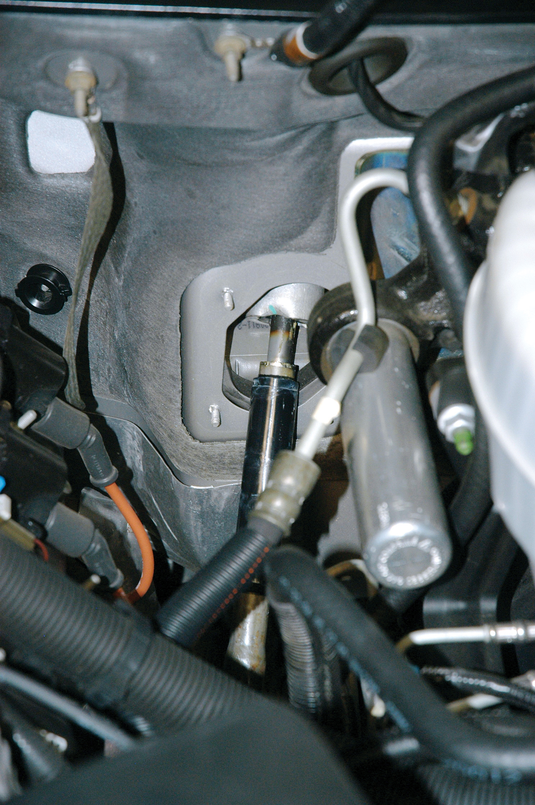 We ordered the kit and then disconnected the two-piece steering shaft from the steering box. Next, we removed the lower shaft from the upper shaft by removing the connecting bolt just outside the firewall. The shaft cover was then removed from the firewall. The upper shaft ran through the firewall and connected to the lower end of the steering column under the dash. Removing the shaft from the column required removal of a large bolt located on the end of the steering column. The new shaft was a direct replacement, so we simply reversed the steps to make the installation. One thing to remember is to make sure the steering wheel is realigned before tightening all the bolts.