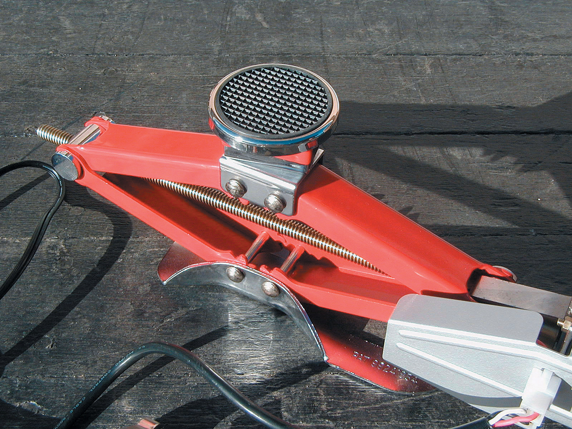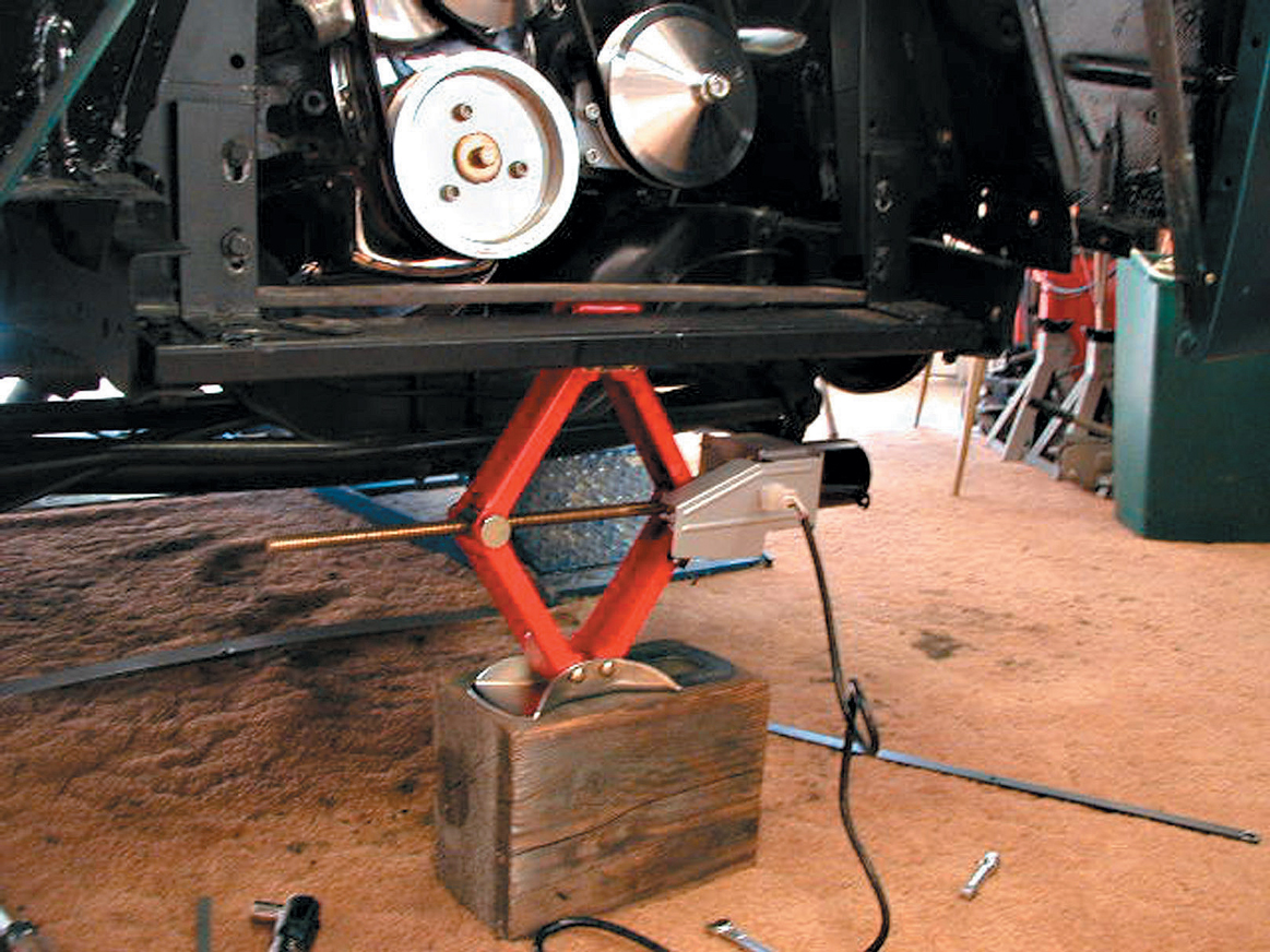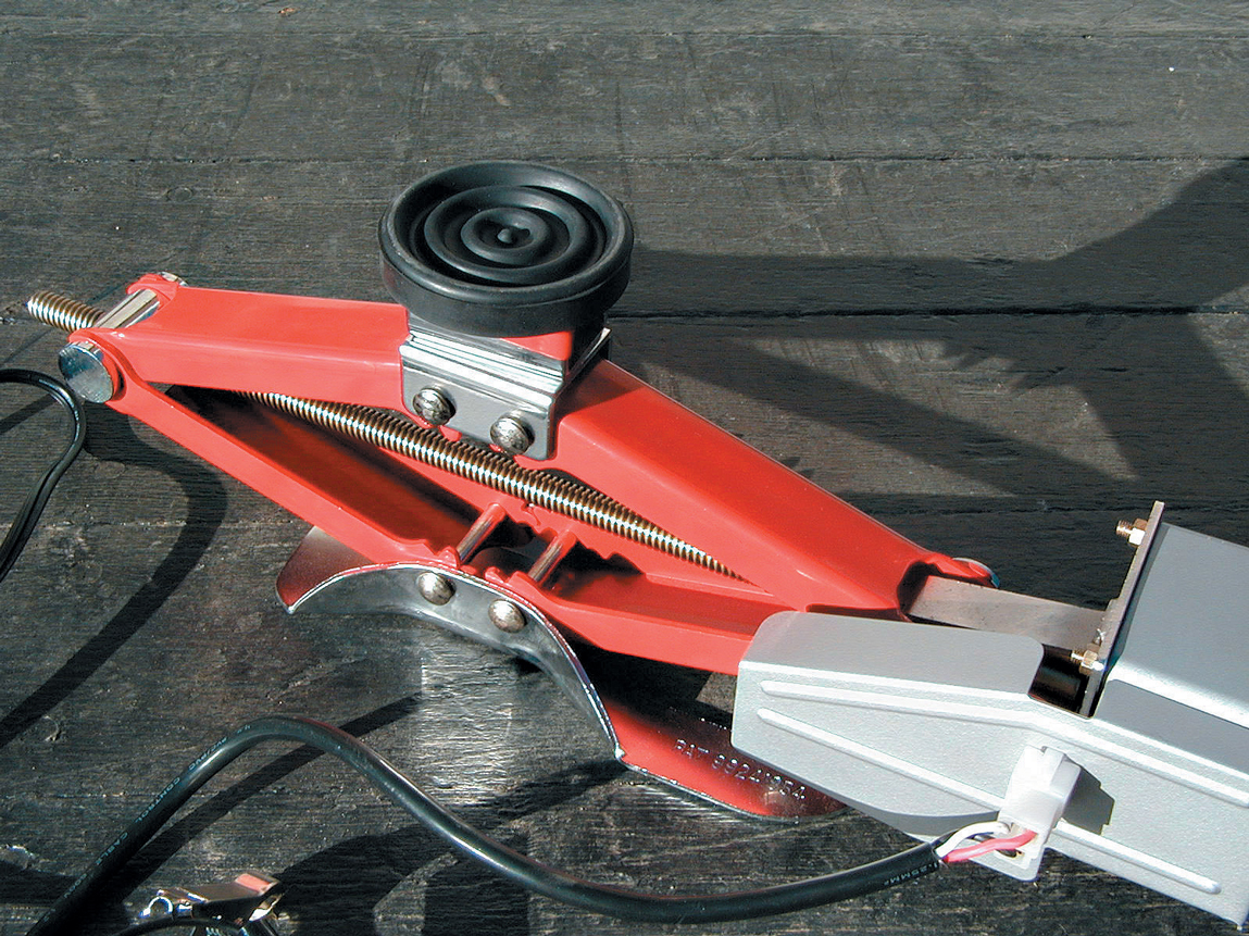 Combining a standard screw-turned scissor jack with a 12-volt motor rated to lift up to 2250 pounds is a great idea. Most street rodders don’t carry a spare tire, let alone a jack or a lug wrench, generally because of the lack of a place to store it in the car. Even if you can’t carry a spare, it’s a good idea to have a jack, especially with your car as low as it is. As handy as this unit is, you’d be wise to tie one to the framerail if there’s no other place to hide it. Think of the hero you’d be if you could help out a fellow rodder in a pinch.