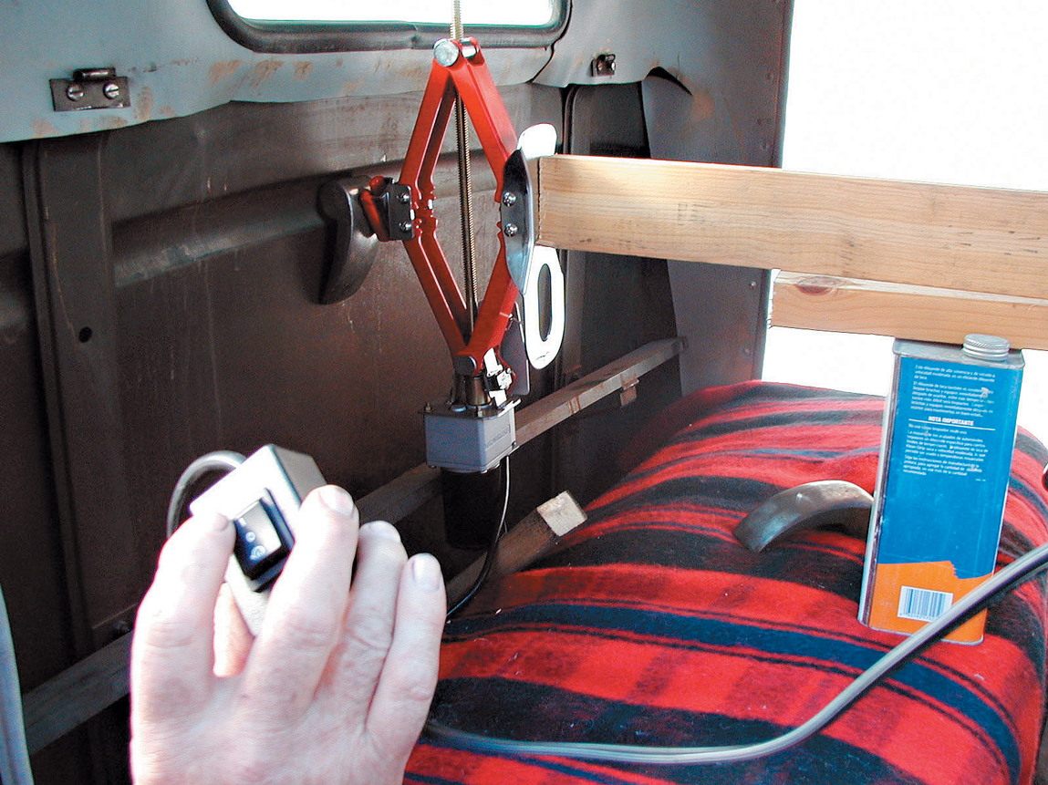 Oh, yeah: It also will jack up a vehicle to change a tire. Note the 12-foot-long wire going to the truck’s battery. The jack is rated at 2,250 pounds, but it has been known to lift one end of a diesel pusher motorhome (however, we cannot recommend that). Check out the shadows under those tires–it’ll pick up your street rod!