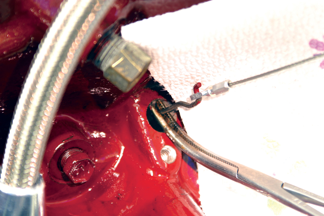 With the dipstick tube fully installed and the excess silicone cleaned off, this end of the application is complete. Again, we advise you to let the silicone dry overnight before starting the engine.