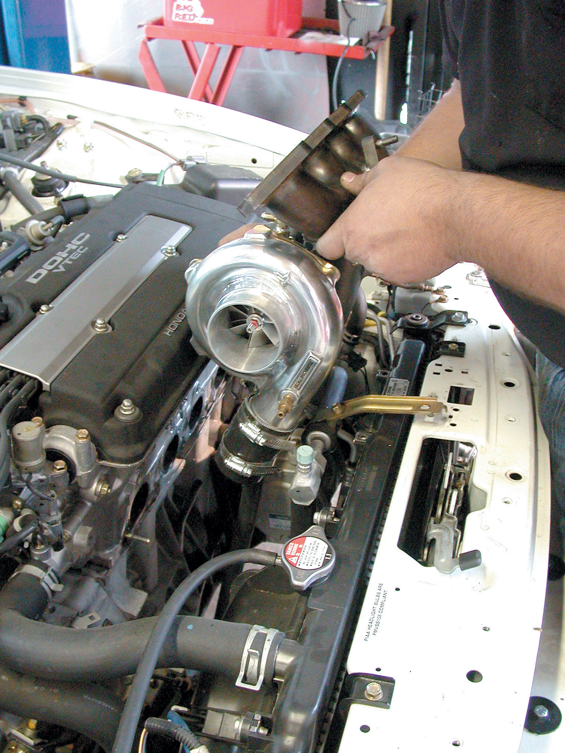 We were on hand as the crew at Thirteen Twenty in Vista, California, installed the new Turbonetics kit onto this ’00 Acura GSR. Carrera is fast gaining a reputation of building quick vehicles that are not one-dimensional. He built FAL’s Acura last season and it was lauded as a great all-around car, one that was fast, yet also exhibited great handling and visual appeal. For enthusiasts in the San Diego area who are looking for a shop to build you that kind of ride, give Carrera and his crew a call.