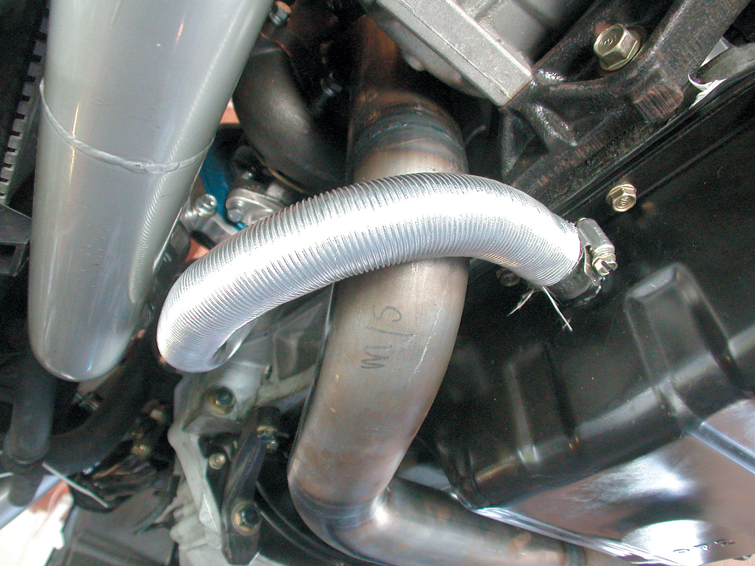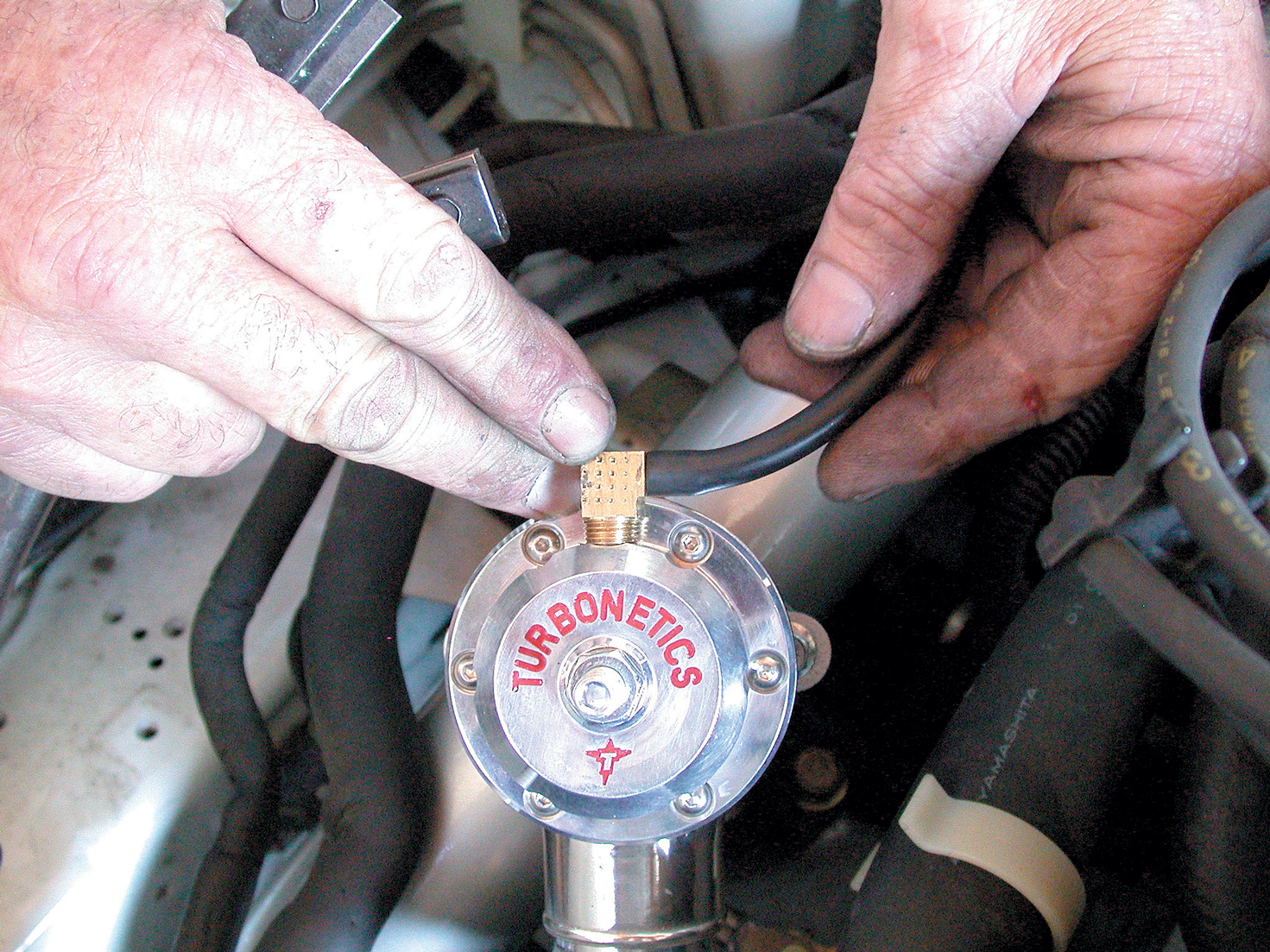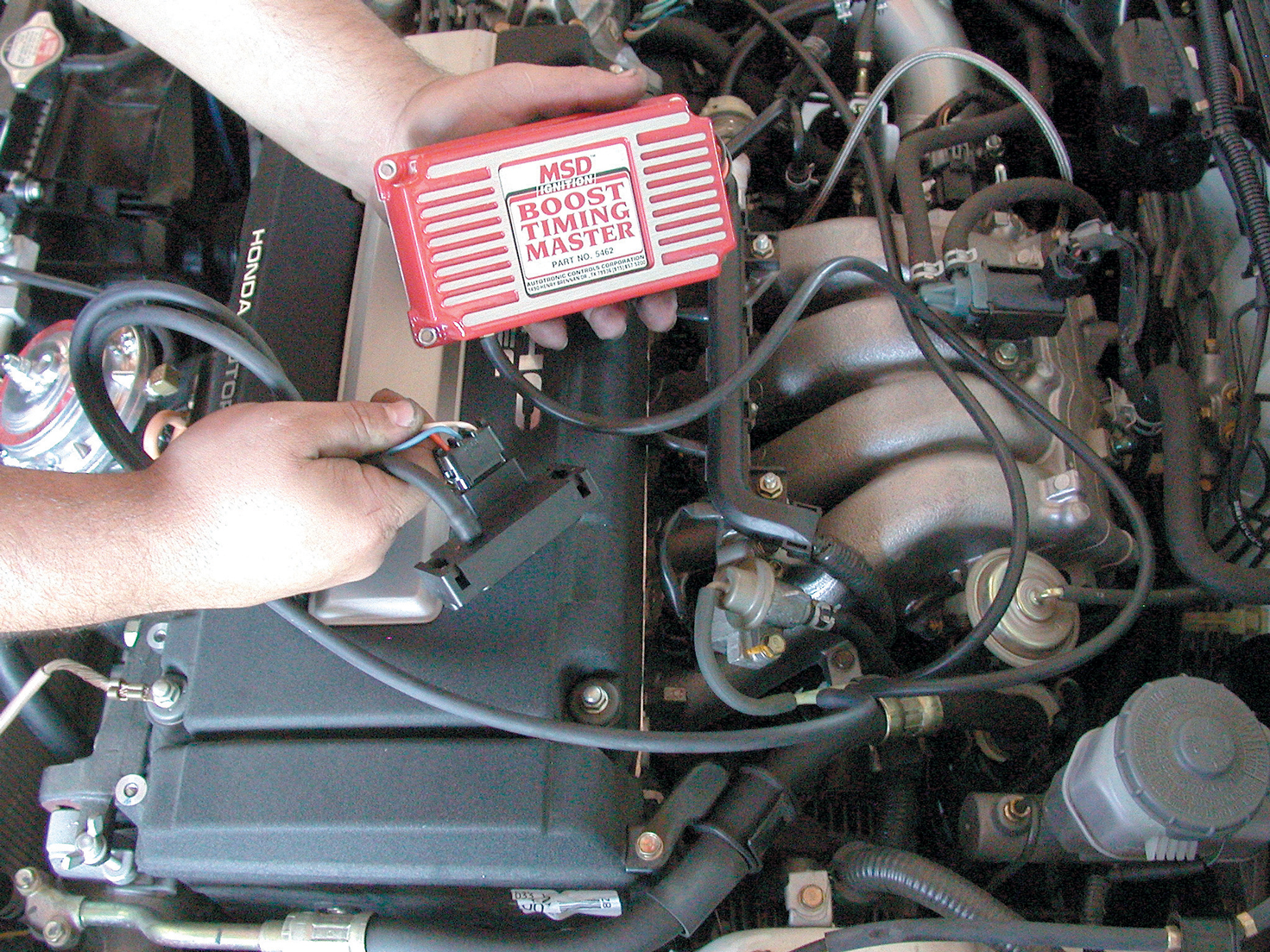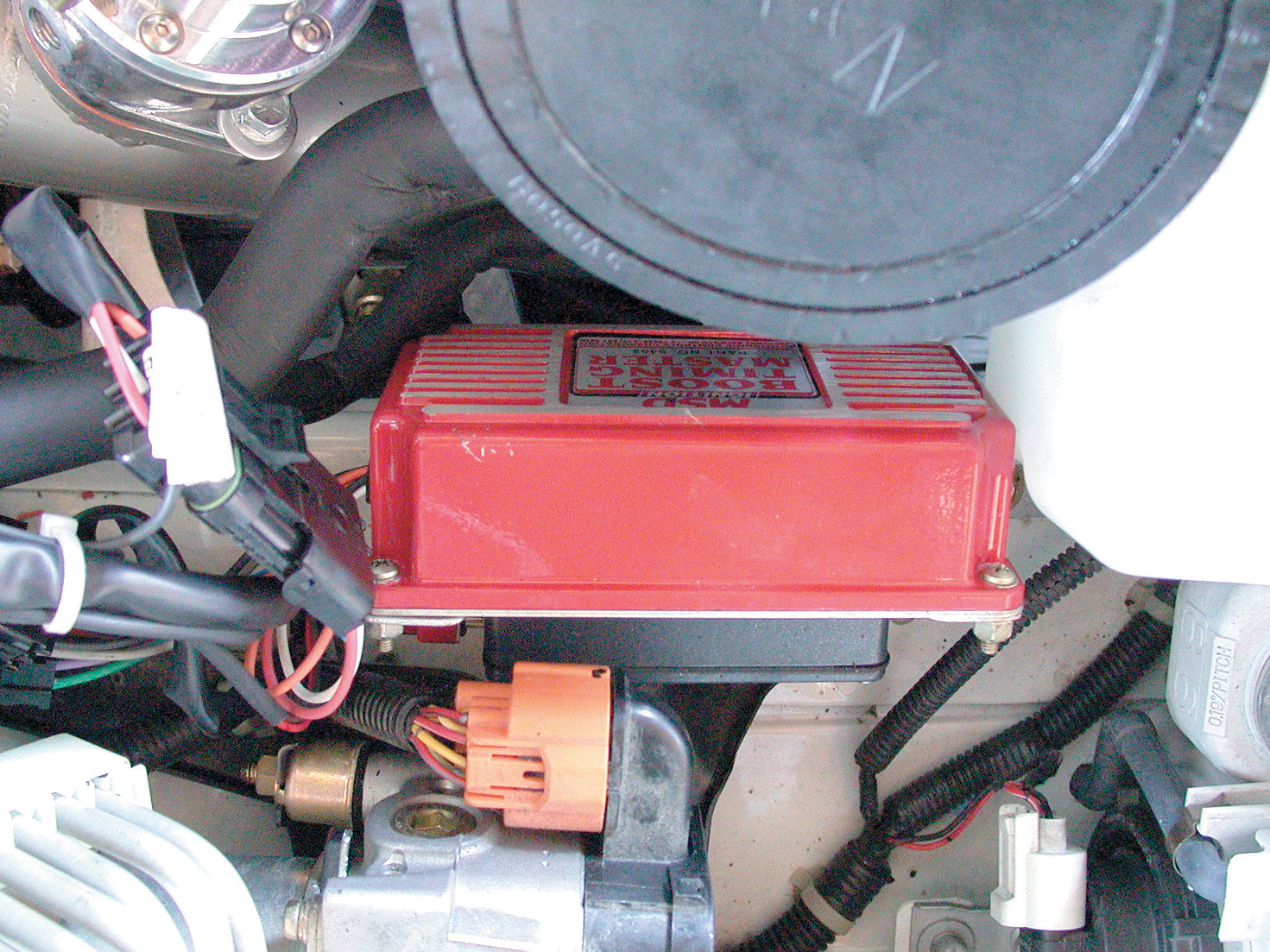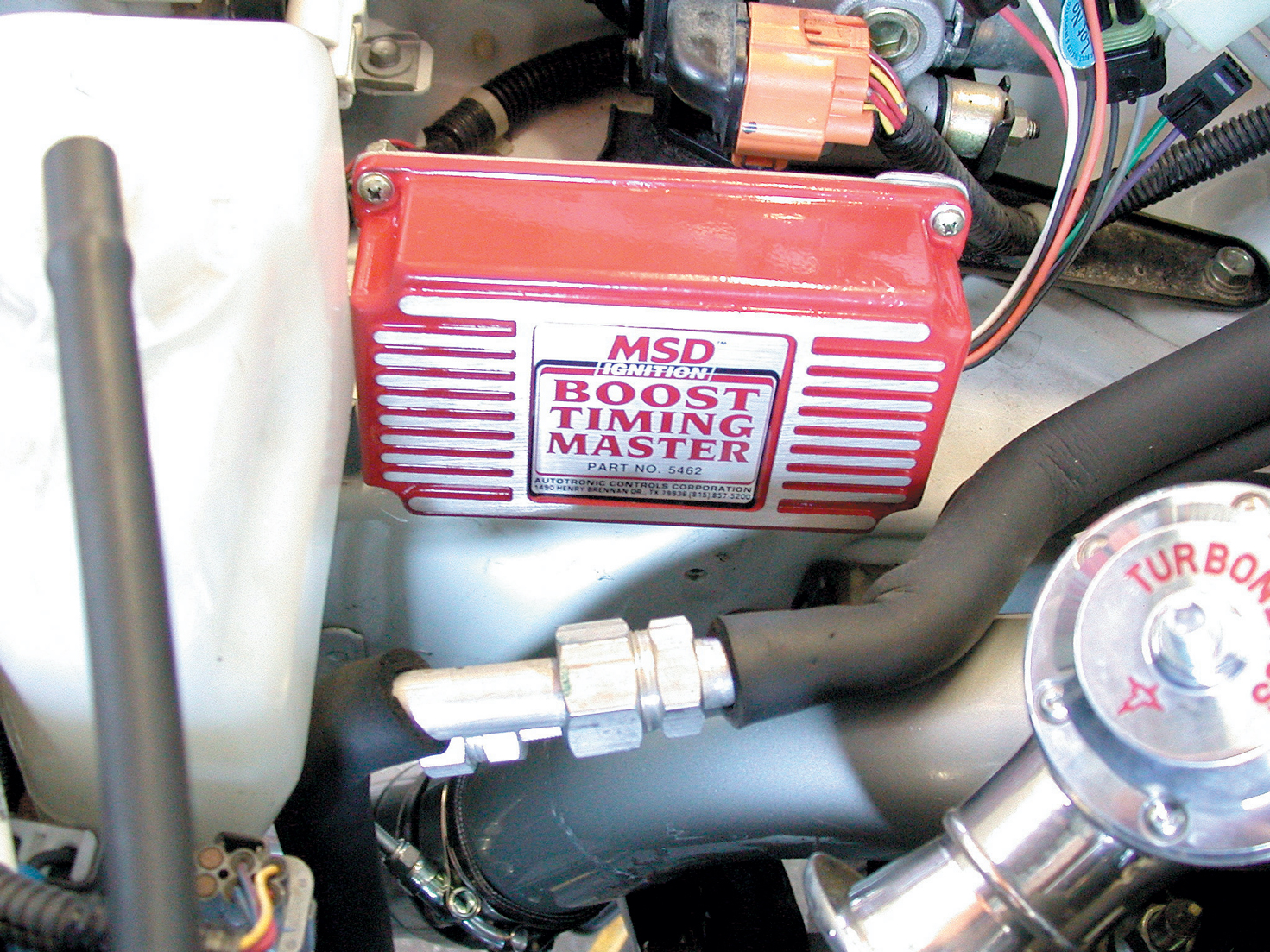To that end, Thirteen Twenty Motorsports added an MSD Universal Boost Timing Master, which allows adjustment of the ignition timing in relation to the boost pressure, plus it has a built-in inductive ignition. That means you can adjust the dash-mounted control knob to retard the timing 1 degree to 3 degrees per pound of boost, up to 20 degrees of total adjustment. The increased spark output of the BTM helps burn the fuel mixture more efficiently and the result is more power.
