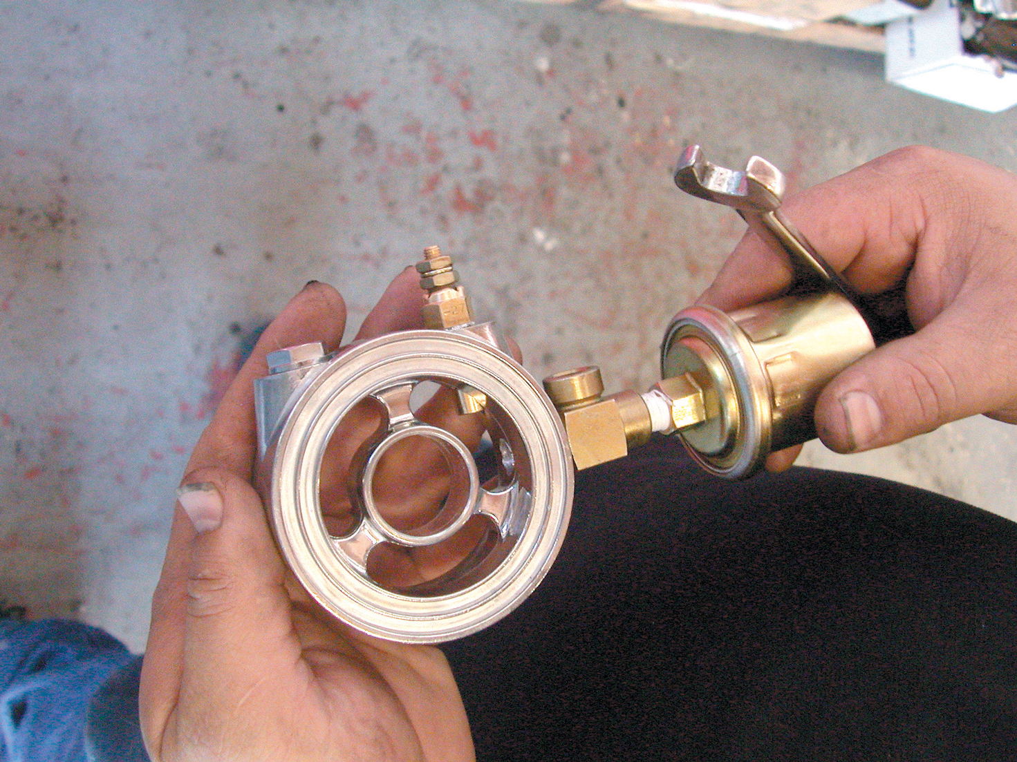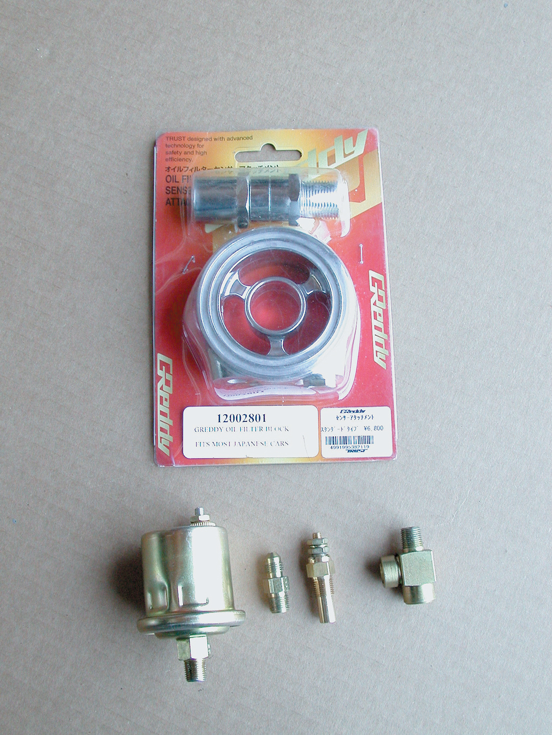 A GReddy Oil Filter Block adapter gets the oil going in many directions and the adapters provide an easy way to install oil pressure and oil temperature gauge sensors. It is made from billet aluminum and simply installs between the oil filter and engine block.