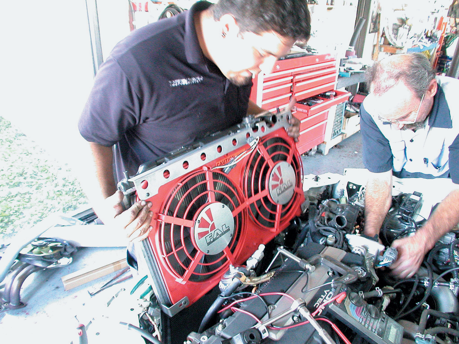 In addition to being 50-percent slimmer than a stock unit (which gives more room for the turbo), it also passes 30-percent more air. This combination is just what the Acura needed, as space is at a premium to begin with and the additional heat generated by a turbo system is dramatic enough to wilt a stock fan. FAL fans use the stock electrical connections and install using the stock mounting holes and hardware. FAL also claims that its fans have 200-percent more “style” than a stock unit. As this unit is a blazing red hue, we have to agree.