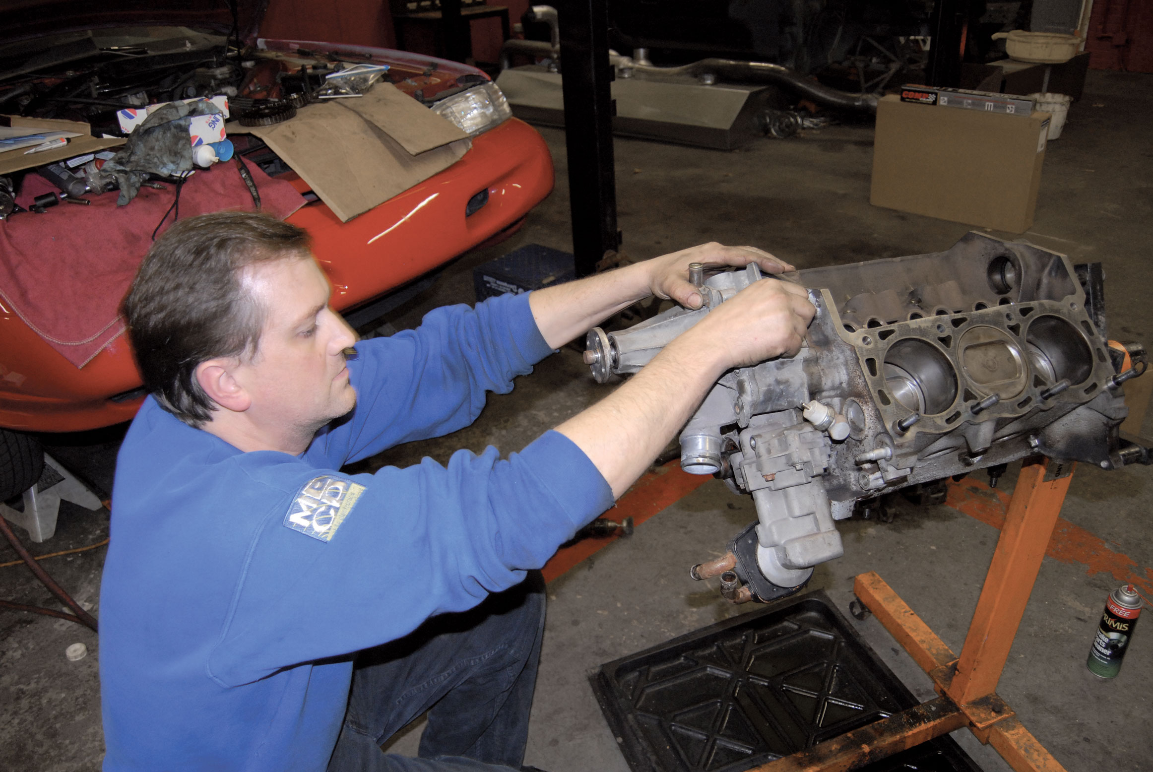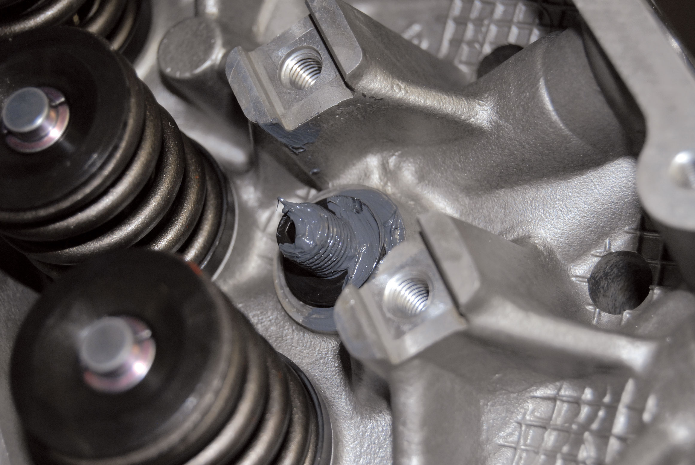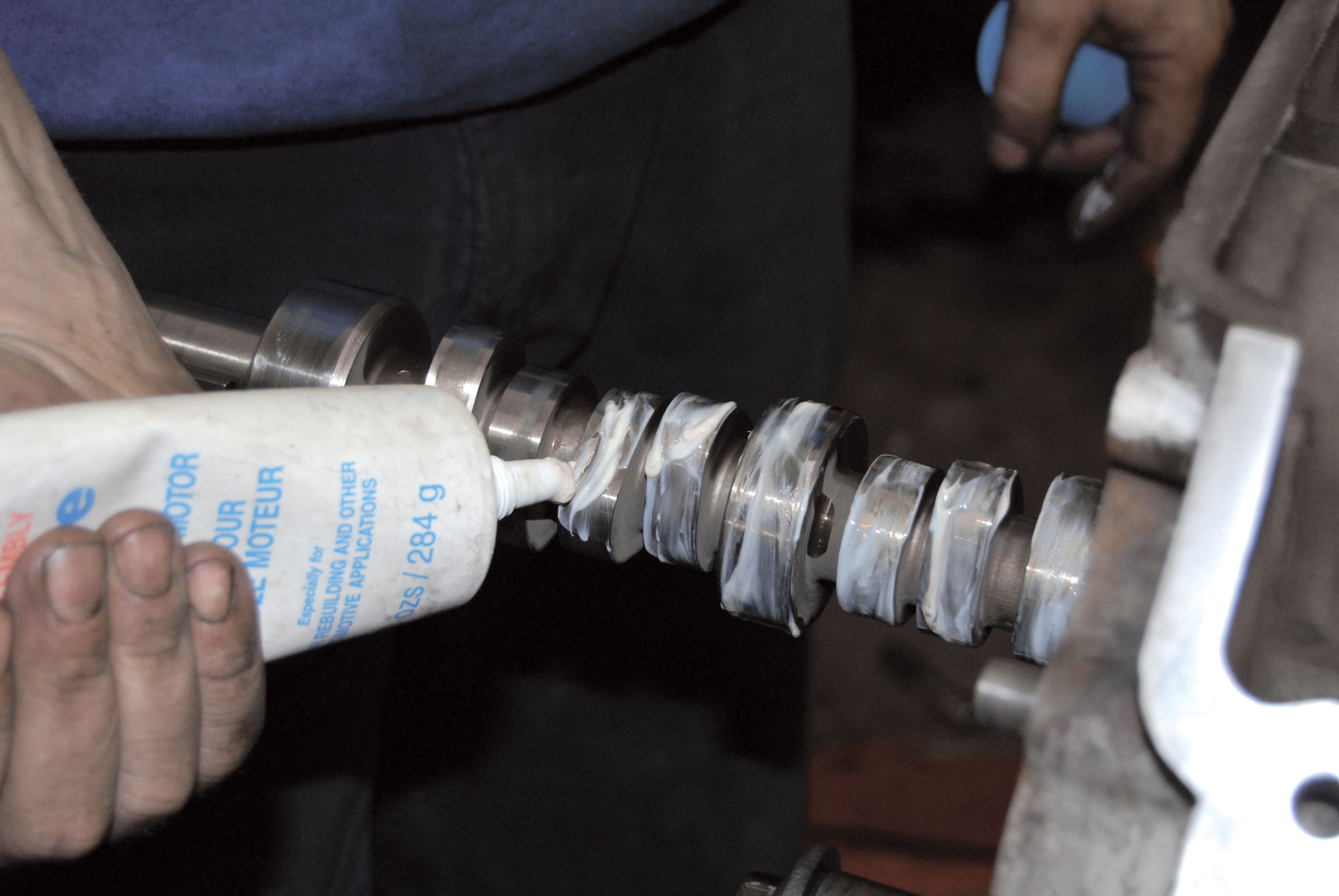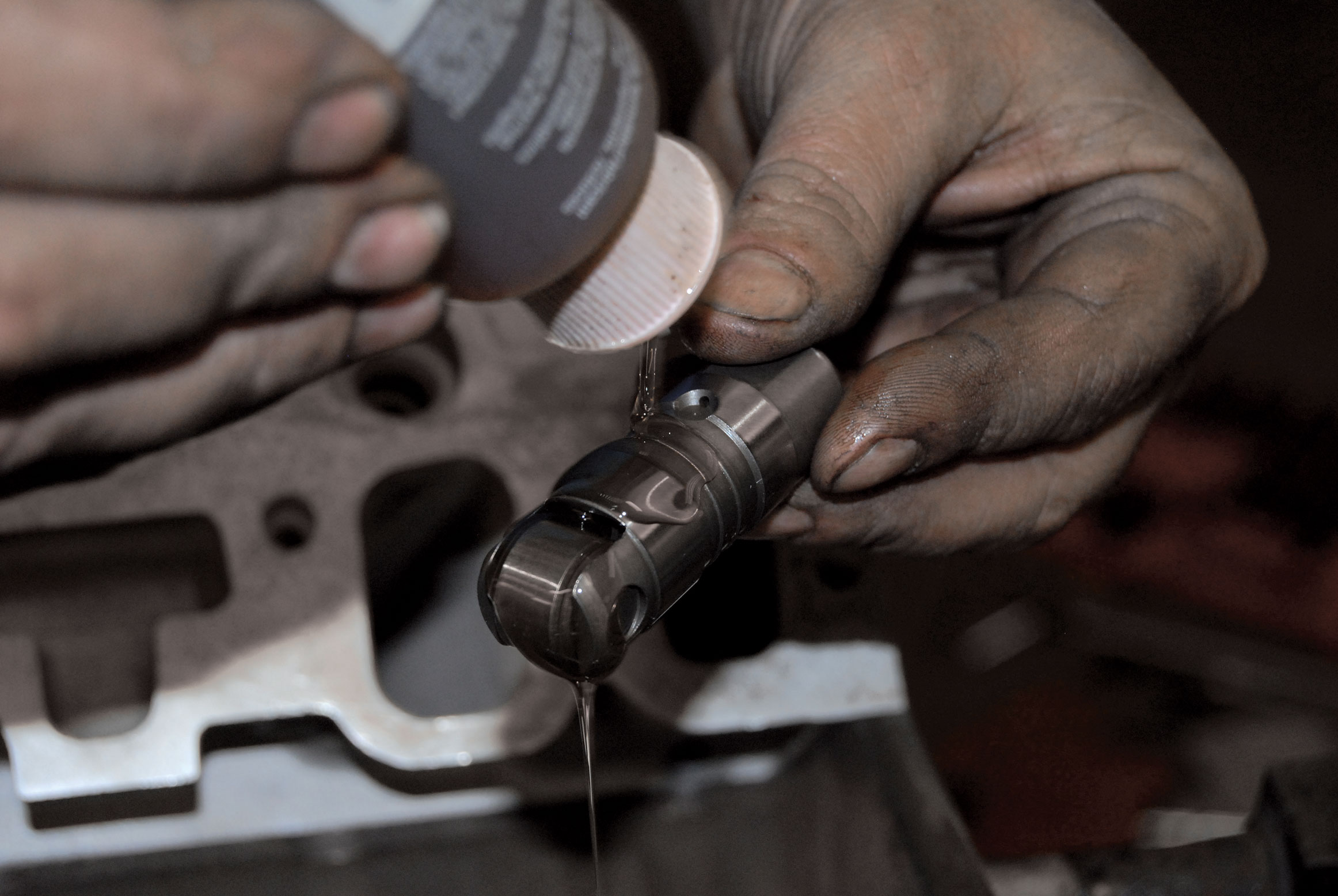 While the heads were off, and before removing the cam and lifters, we took the opportunity to remove all the carbon from the tops of the pistons and installed the ARP head studs. With the motor dry and free of oil, we pulled the cam and lifters, pre-oiling them as we assembled everything. The cam doesn’t require special lubrication, because it is a roller design, but we use general assembly lube just to make sure no dry spots exist during initial start-up.