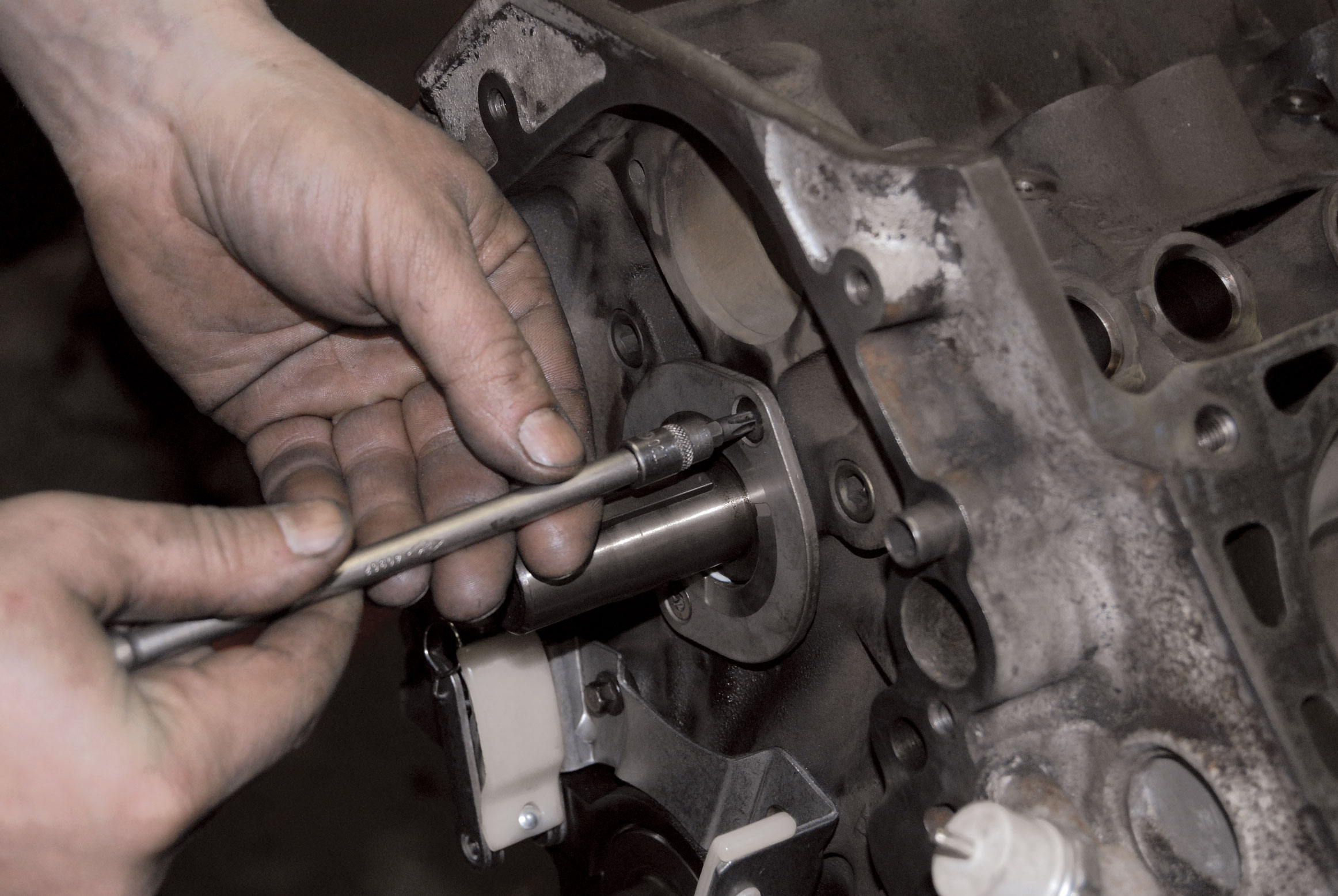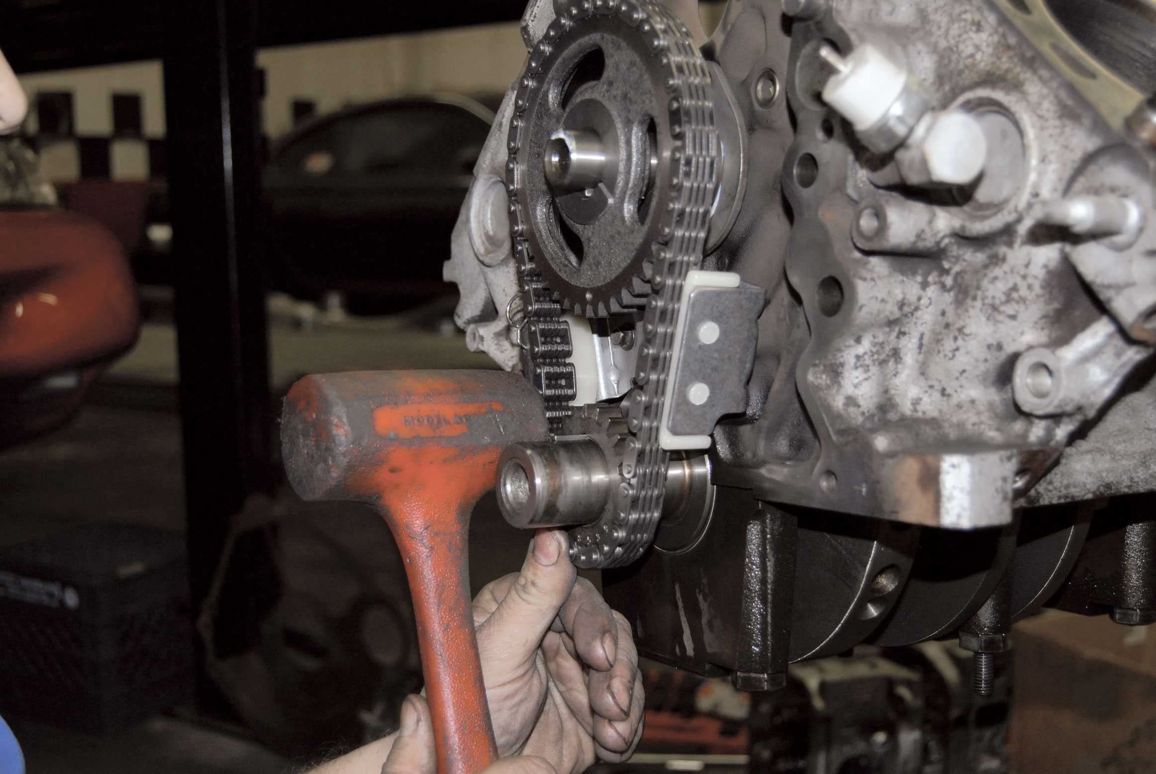 Since it is necessary to remove the harmonic balancer during this process, you must assess the condition of the balancer and consider possible replacement. In our case, we already had a solid-steel BHJ balancer. In any event, to avoid damage, always use the proper tool to install a balancer. A hammer and a block of wood are not the proper tools.