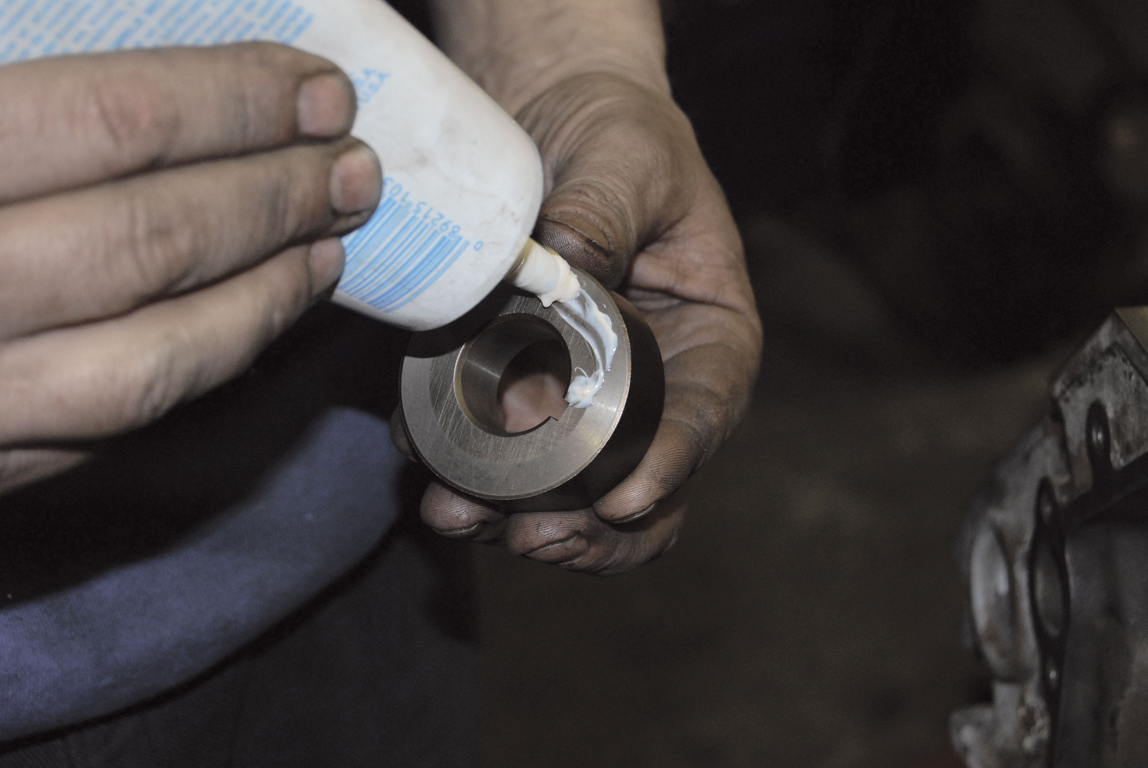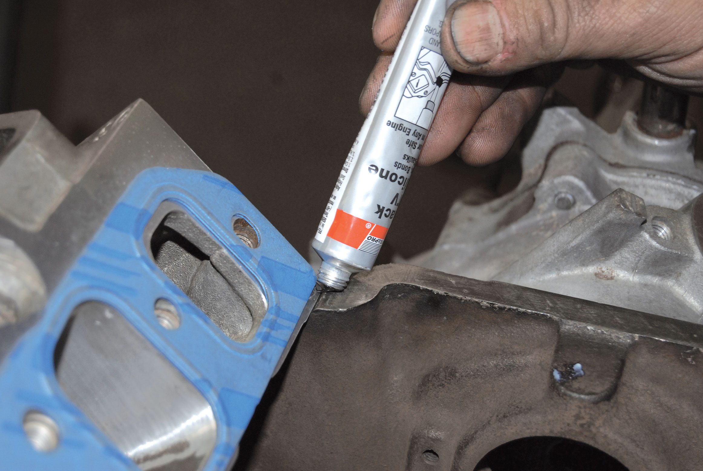 • Take time to clean all the parting lines around the timing cover and intake manifold prior to removal. We can’t emphasize enough the importance of keeping things as clean as possible. Any time a motor is opened, there is serious risk of trash getting into the oil pan, oil pump and subsequently the bearings. This was the case with this motor, which showed severe bearing wear and oil pump damage that required replacement. We were lucky to have caught it in time, as all the bearings were worn through to the copper linings.