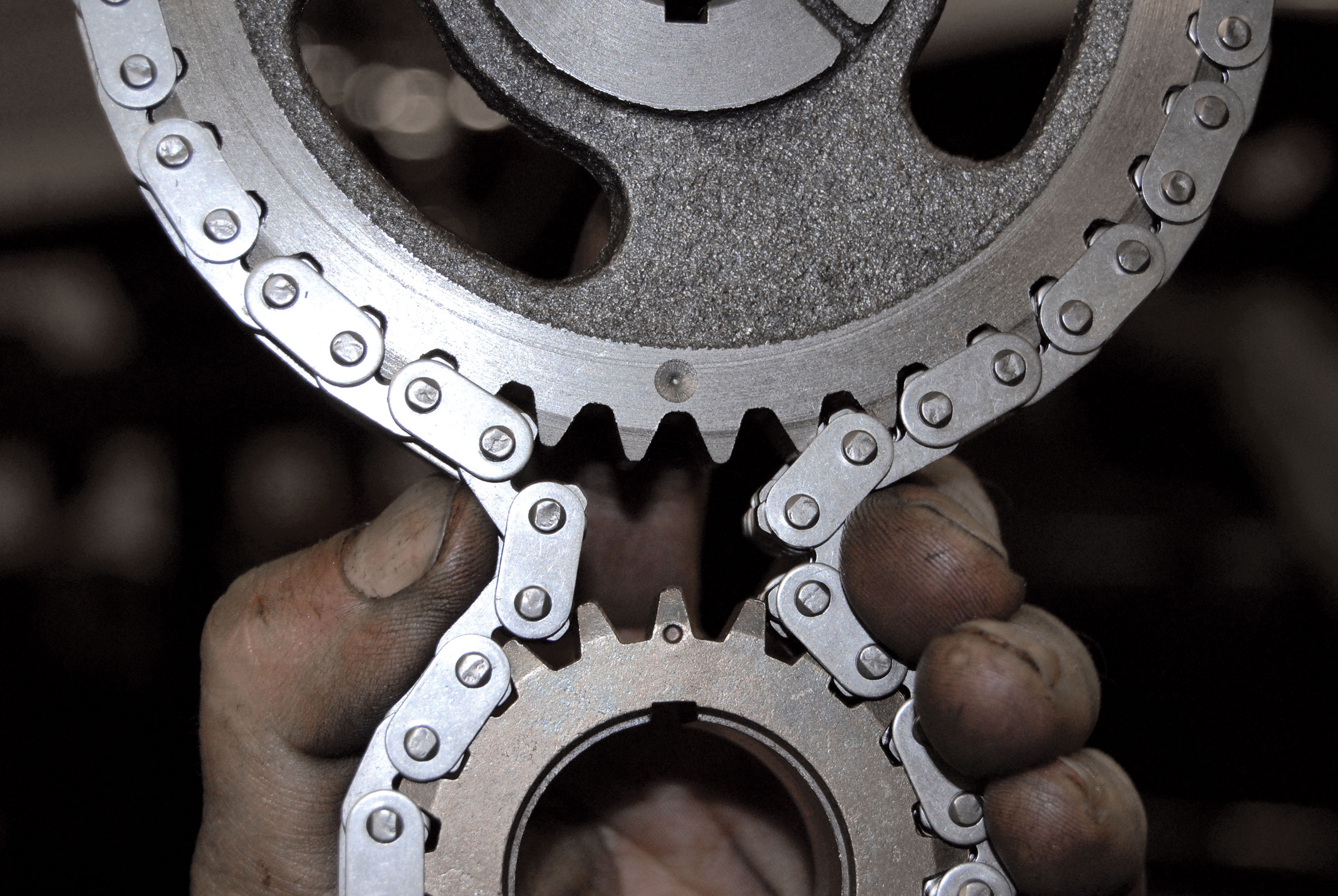 Checking the cam centerline with a degree wheel is the best practice because of variations that can occur not only in the cam but in the timing chain, too. While SC timing chain sets do not offer adjustability, it is good to know where you are when analyzing your results. In our case, we came in just one degree retarded from spec, so we left it as ground.