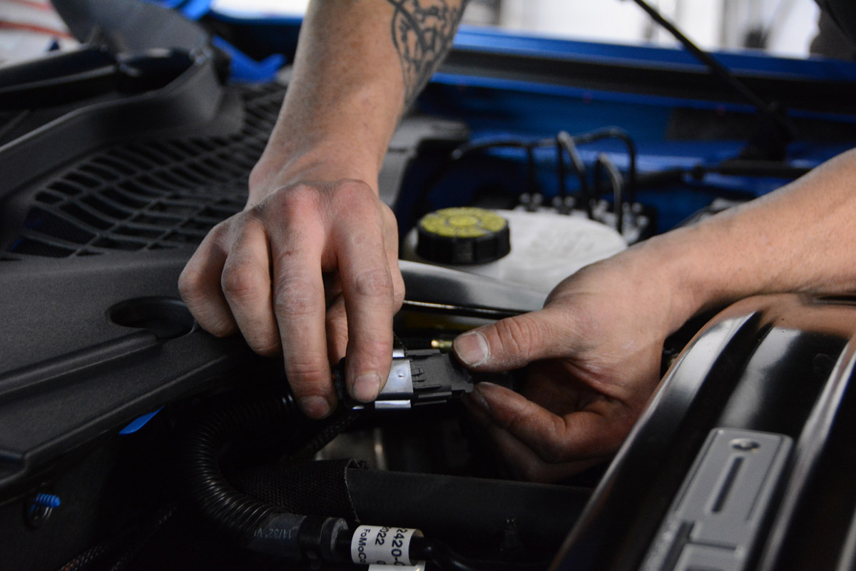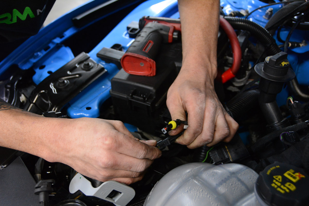 The wiring harness in the PROFLEX system features simple plug-and-play connections into the fuel content sensor and dual Commander Modules. Only one wire needs to be spliced into the factory ECU harness, and we’ll cover that in this article.