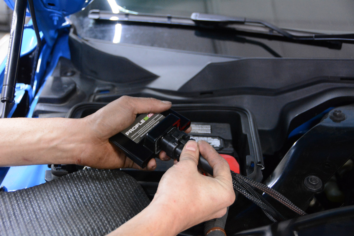 A new piece that’s included in the PROFLEX DX system is this Direct Commander Module. Since this Mustang features a port fuel injection system and direct injection, this secondary module is necessary for proper fuel delivery.