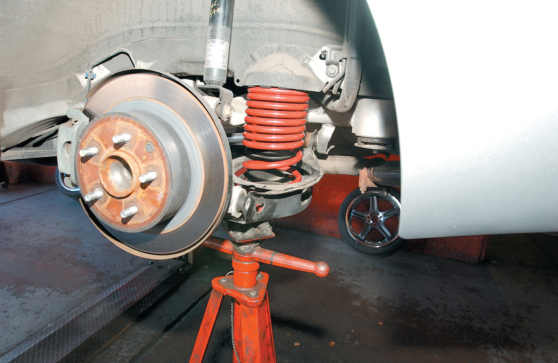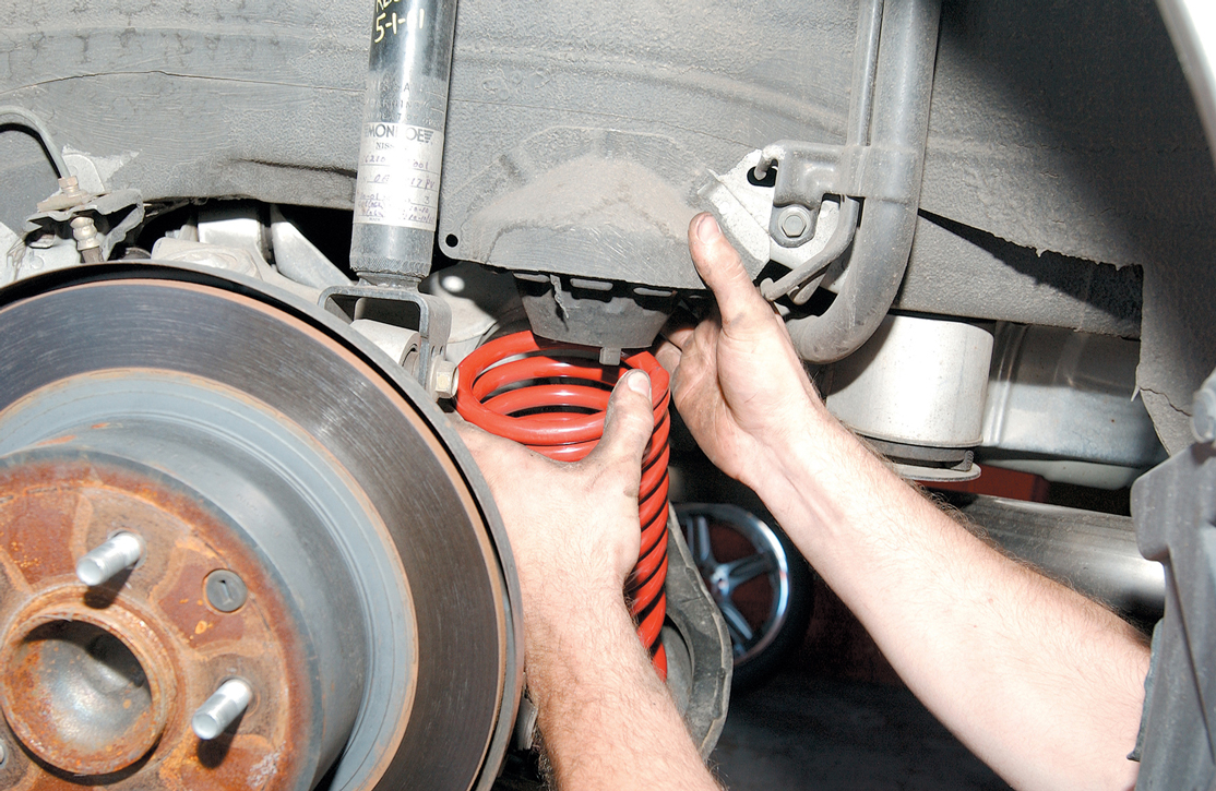 Since the Altima install shown here was designed primarily for the street and the show circuit, it was decided that the Eibach Sport spring would do the trick. This gives racecar-like handling, but at a much more reasonable price than a full race setup. Installation is nothing more than what you would expect when changing a set of springs and that does not require a great deal of experience. It is, however, recommended that a professional shop do the installation, should you have little or no experience with such things.