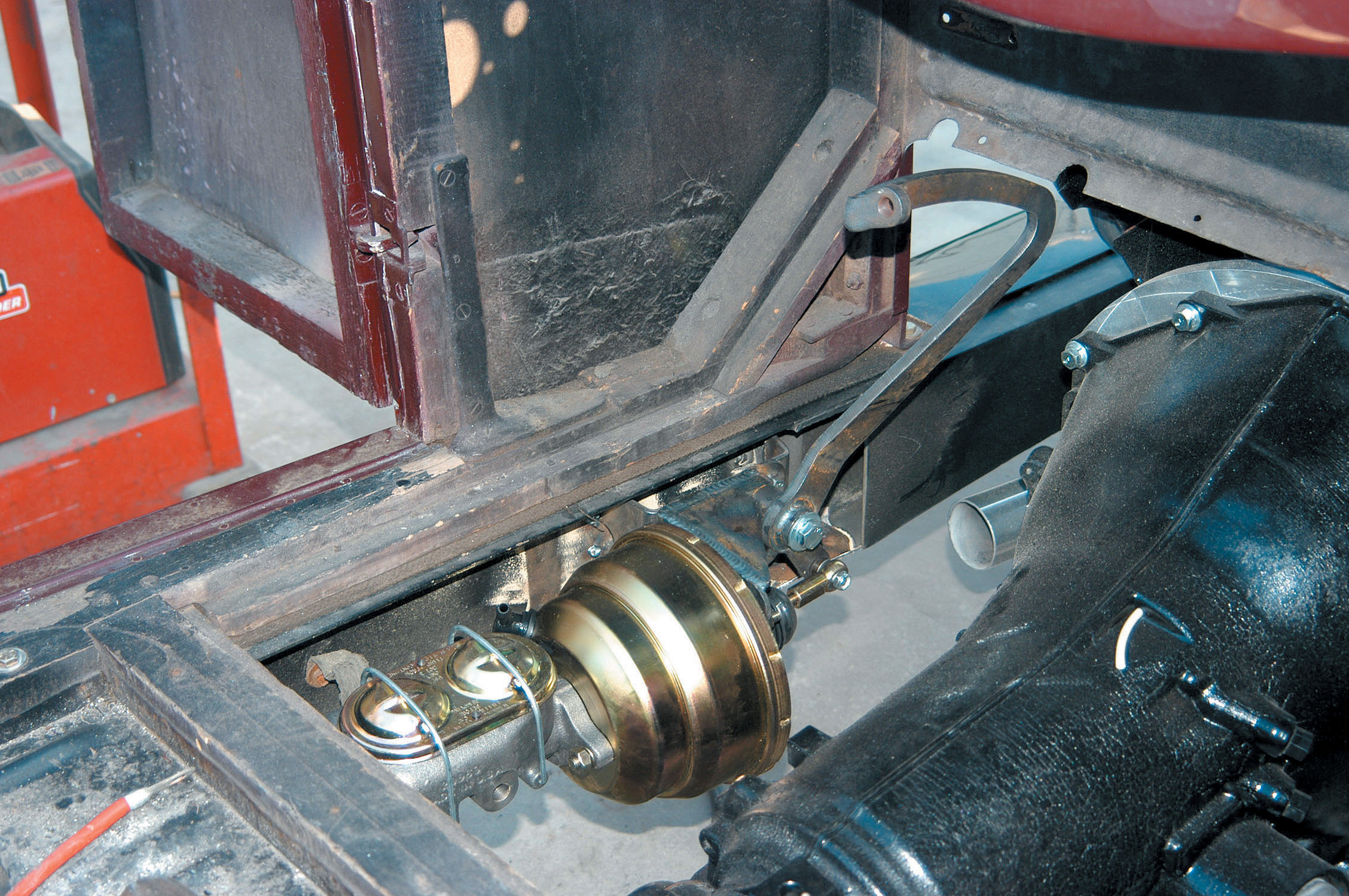 As it turned out, the Chevy kit looked as if it were designed for this Chrysler application, so Shirer’s keen eye and vast experience paid off handsomely. It saved him from fabricating many of the install parts that would otherwise be necessary to adapt the modern braking system. We bring you this installation not because we expect that many of you are presently in the process of building a ’27 Chrysler, but because if you are building something that is unusual and there are no kits available, this booster and bracket might be exactly what you are looking for. Or there may be other over-the-counter items that would work just as easily as this one did in this application. The broad understanding and the many oddball combinations that have now become street rods can all provide you homebuilders with new hope that there just might be a simpler way to accomplish your objectives. In this case, the parts were of quality construction, and they were extremely easy to fit and install. To us that rings of cash savings over the long haul. See if you don’t agree.