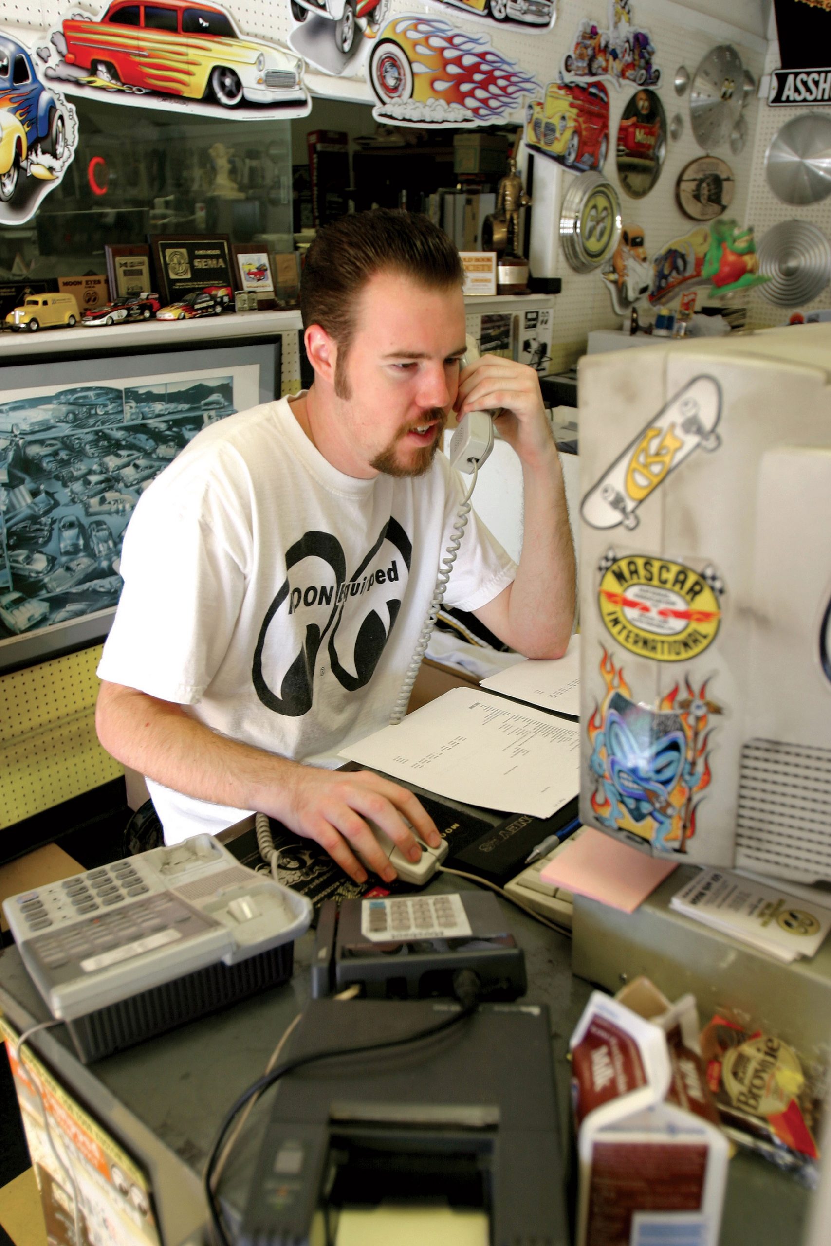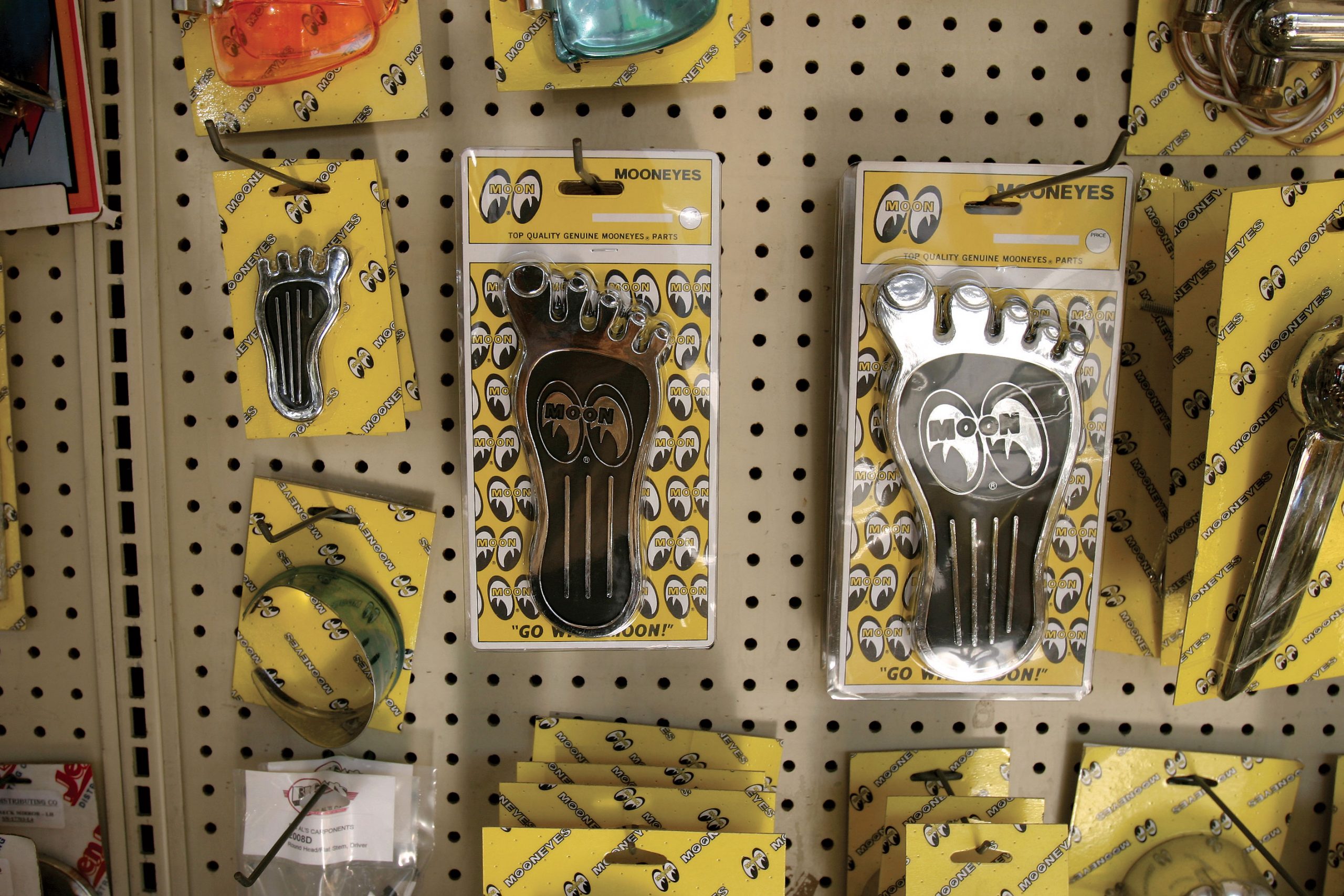 The showroom is what every auto parts store dreams of being: diced in checkerboard black and yellow tile with a heap of pegboard. Up front, the sales counter is the hub of business, fueled by eager customers that keep the phone ringing off the hook. Bob, Sam and Robin deal one-on-one with customers, keeping all 50 states Moon-equipped.