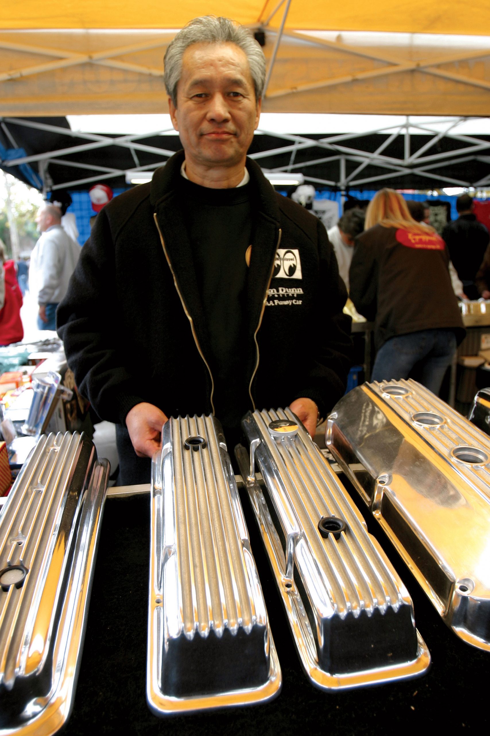 Over in the photograph-filled office, Mooneyes’ head honcho Kodama manages the day-to-day operation of the original facility. Said to have once rebuilt an El Camino engine overnight, Kodama uses a straightforward, hands-on approach to running the speed shop and his mail order business. Proud of the company’s heritage, he continues to cater to individual rodders as well as celebrity builders. Determined not to become a mass production facility, giving special attention to every order continues to be his personal motto.