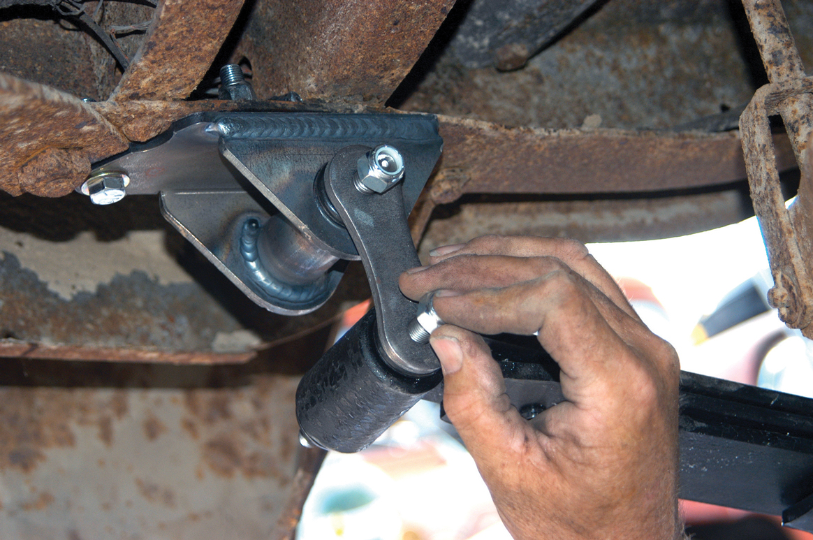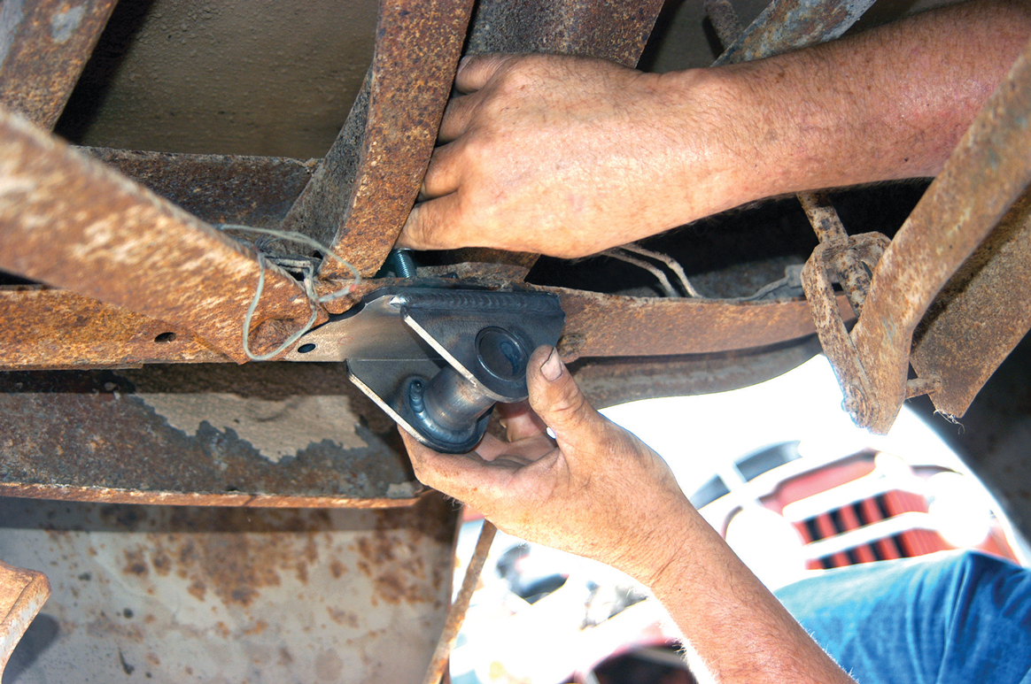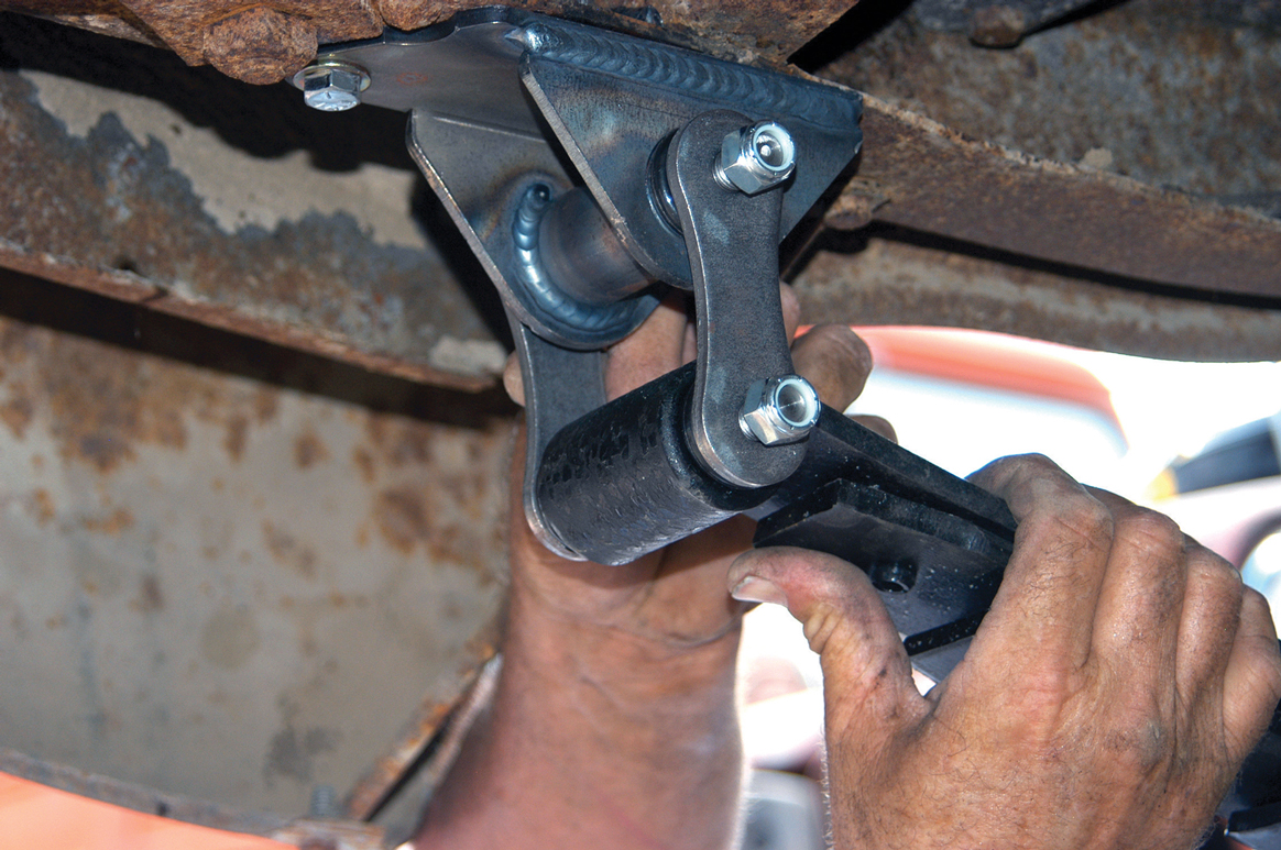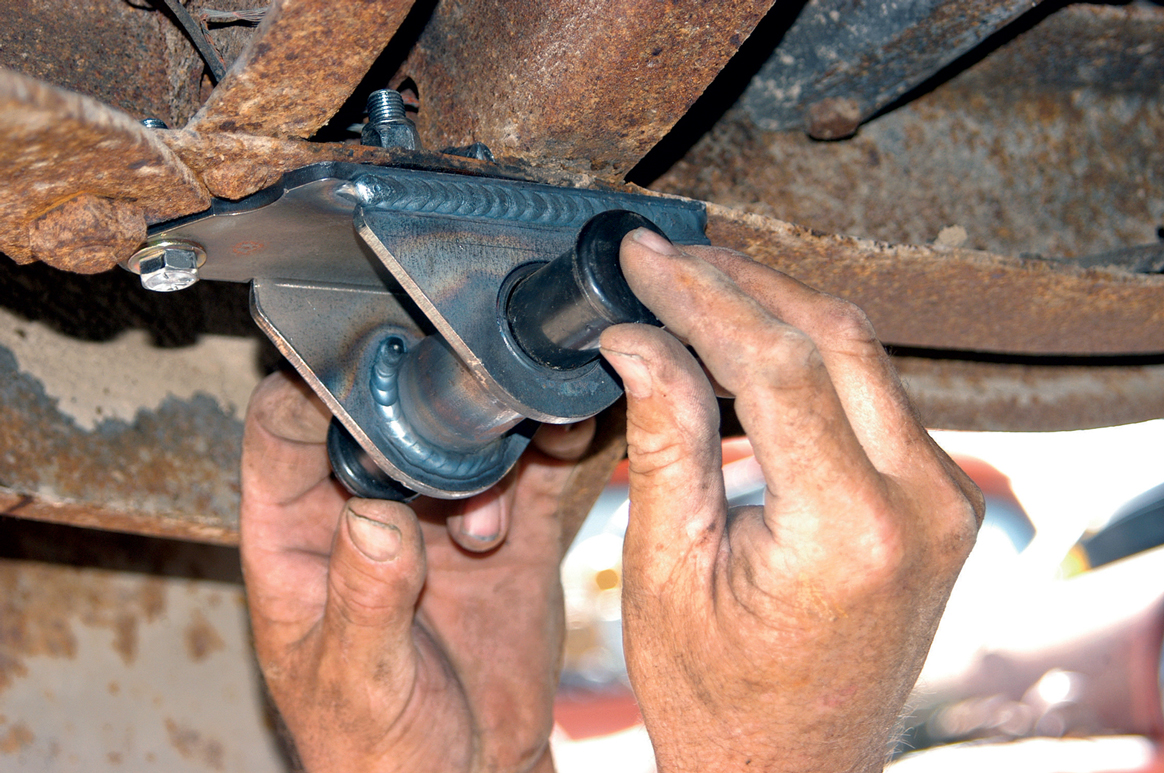The urethane bushings were installed in the rear bracket. This closeup shows how the bracket is connected to the frame.