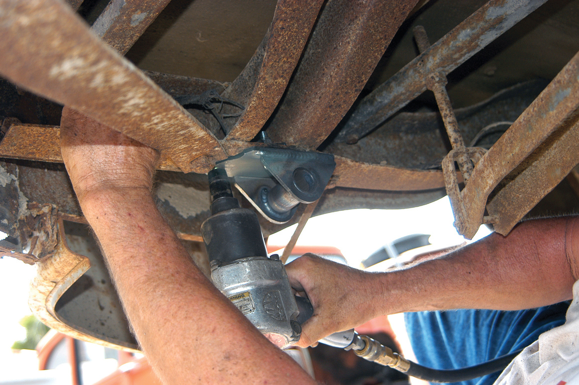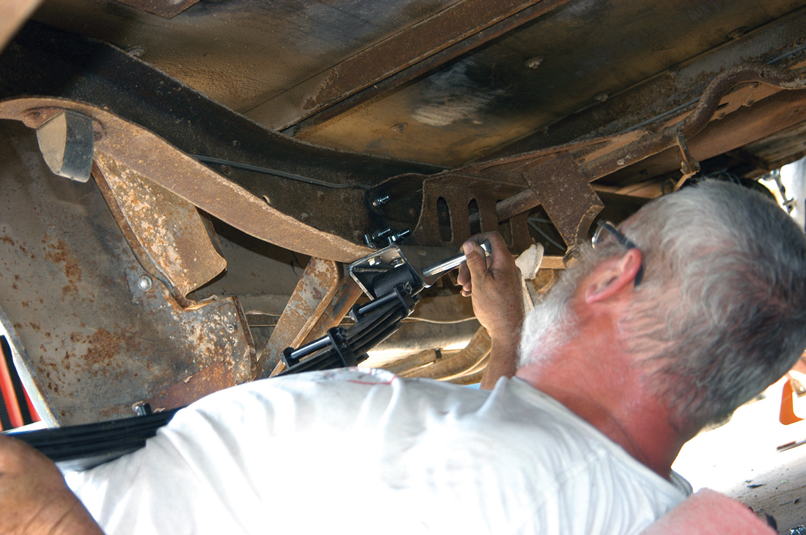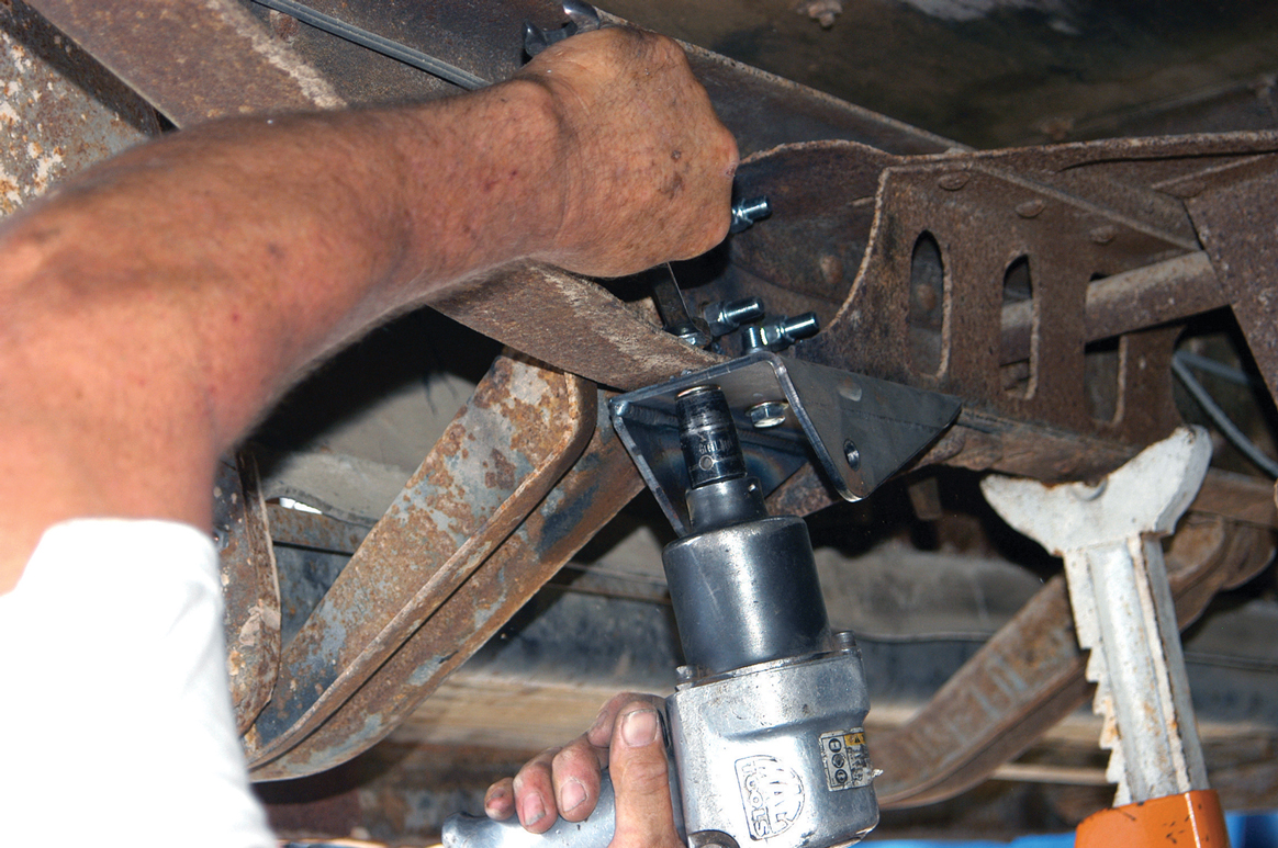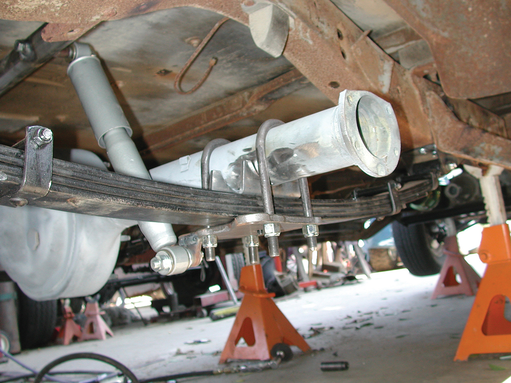 In this story we will show you how the rear suspension was improved, in this case with a kit from TCI Engineering, but there are many companies that offer just such an upgrade. The truck was already equipped with dual parallel leaf springs, but the springs were extremely heavy-duty units. These suspension kits come complete with springs, front and rear brackets, shock absorbers and a shock crossmember. Different manufacturers will offer different shocks and bracket assemblies, but they all do virtually the same thing.