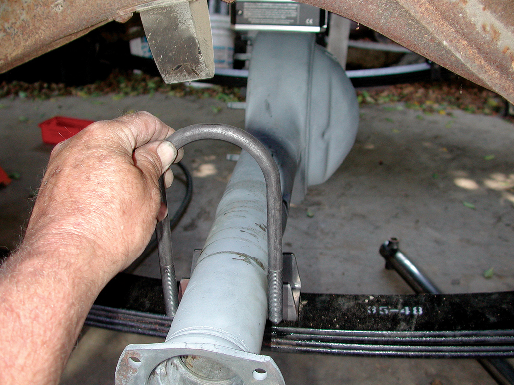 The U-bolts were placed over the differential axle tubes in preparation for tightening the differential to the springs.