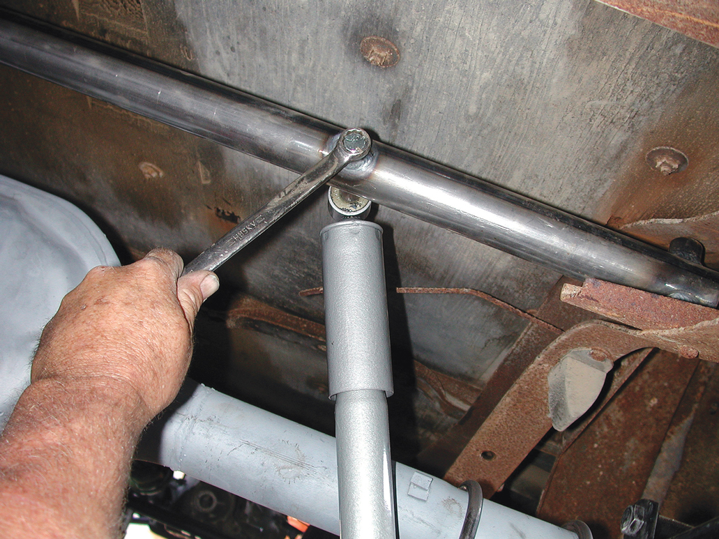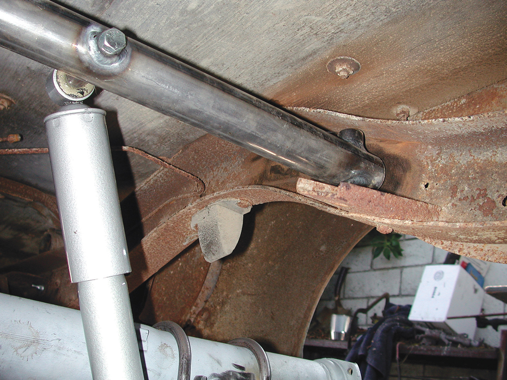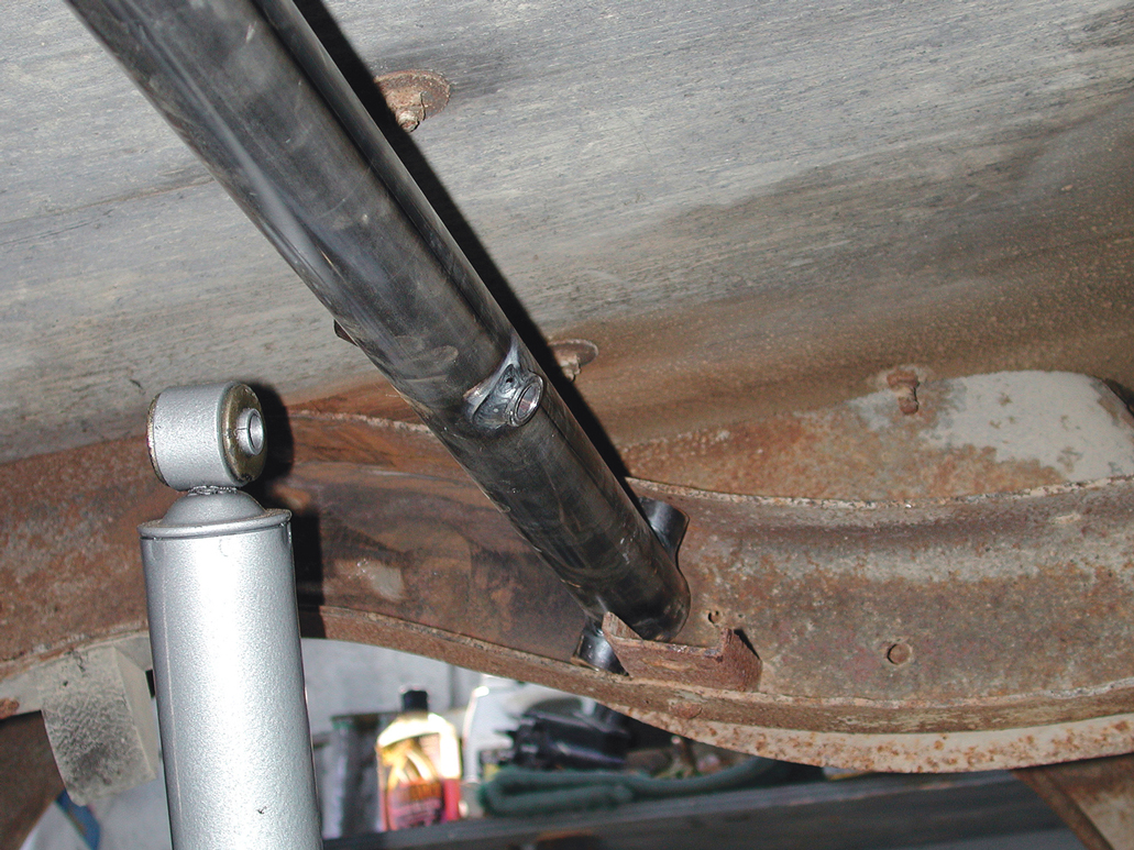 The upper shock absorber crossmember was placed inside the frame. It has to be located in a position where there will be no binding when the shock absorbers are connected.