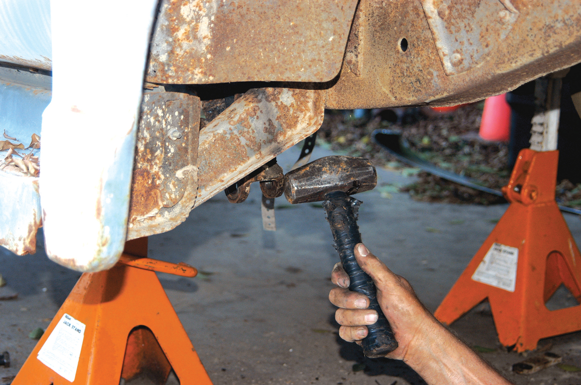 After the rivets were cut out, the bracket was loosened with a large hammer.