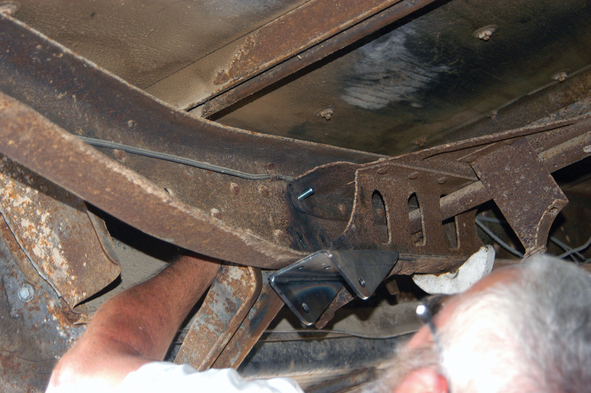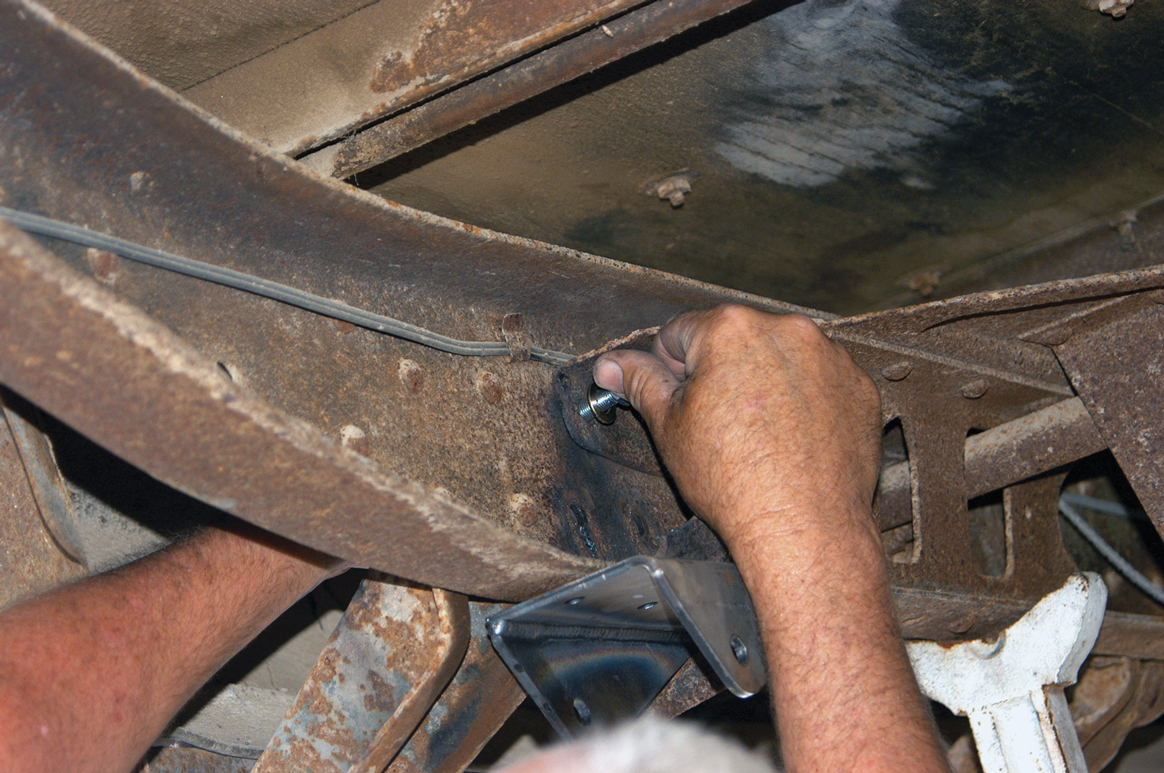 The new bracket was held against the frame and bolts using the original rivet holes to secure it.