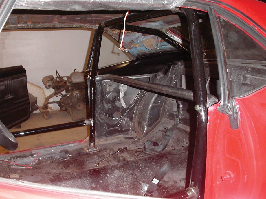 You will note that one of my requirements was not to pass any sanctioning-body tech rules for rollbar design. In order to pass, for example, NHRA or IHRA tech, the sidebar has to pass from the main hoop to the floor at an angle that makes getting in and out of the car akin to climbing a jungle gym. Having no desire to do this, and knowing that I will always run my car on treaded DOT tires, it would be hard for my car to go in the 11s, especially with my 3:00 rear gear set. Most tracks that I have been to will not hassle you as long as the bar construction is sound and the car does not dip into the 10-second barrier or faster (even if you have a rollbar like mine, with the front two bars “laid down”).