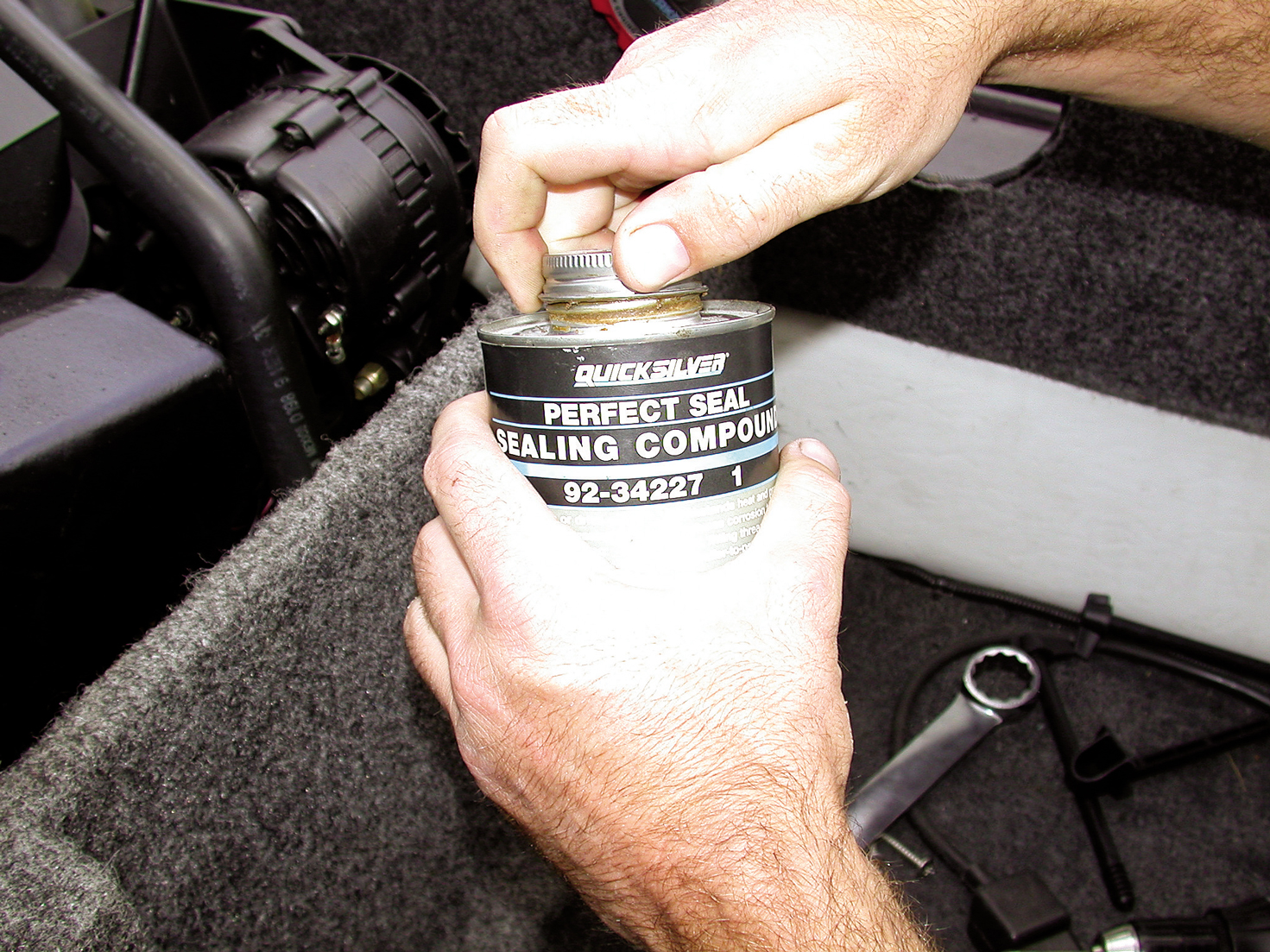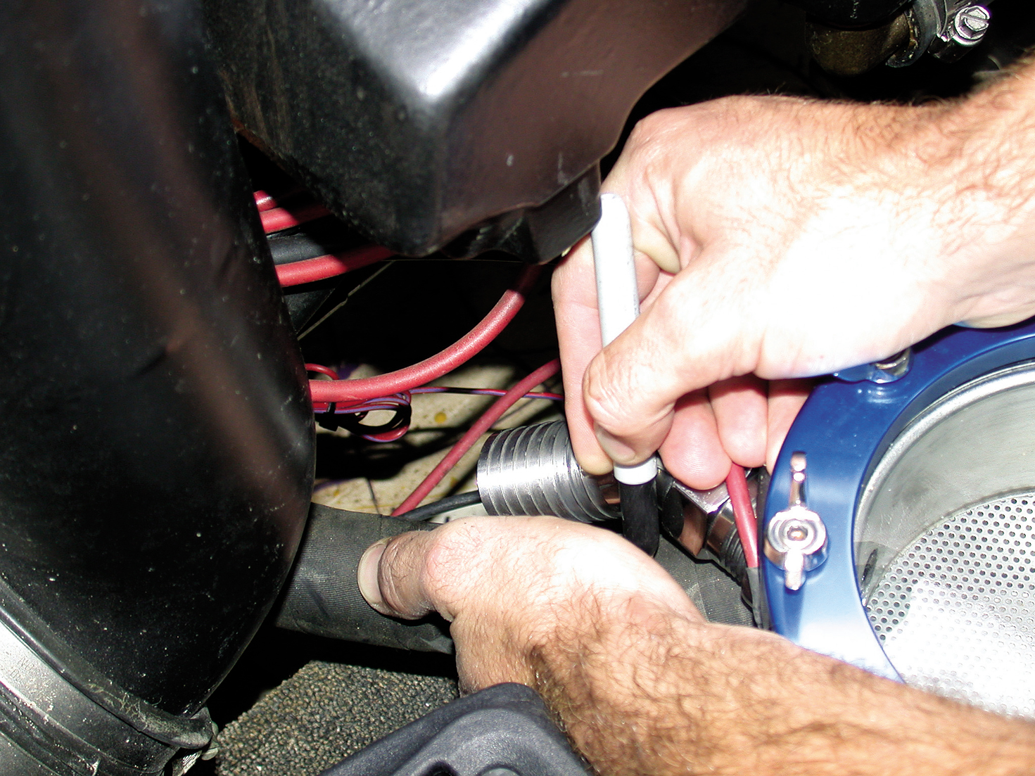 Duffin tightens the hose clamp.