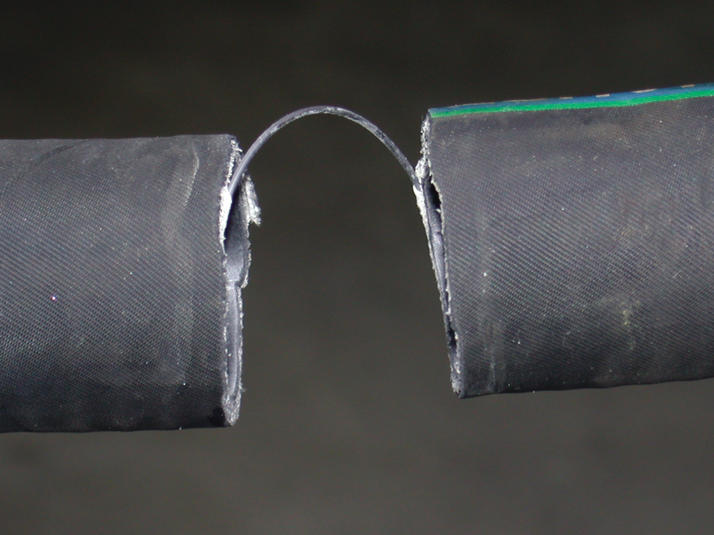 This hose has to be wire-reinforced or else it will collapse. Side cutters are used to cut the wire