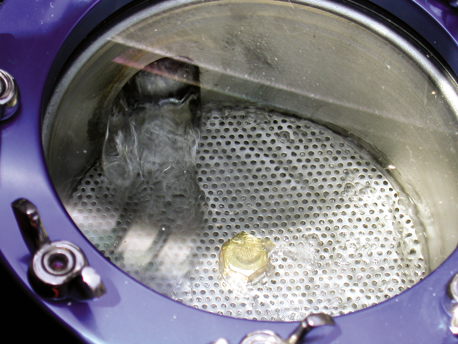 With the boat running, the incoming water is strained before it goes through the rest of the system.