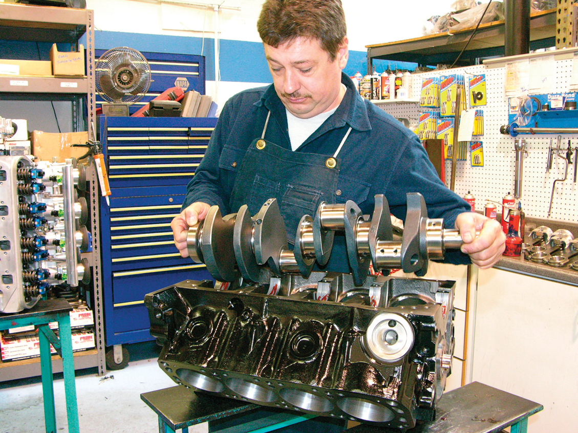 We call his the small-block monster motor because it is beefier and stronger and can accommodate bigger bores and longer strokes. It’s also thicker at the bulkheads—1 inch thicker than stock—and along the cylinder banks and deck. The MOW block also has splayed four-bolt mains, complete with billet steel caps and 1/2-inch fasteners. And if you want all these cubes without the extra 60 pounds of the iron block (in all the right places, however), Mitchell has gone one better and will shortly introduce the heavy-duty block in aluminum.