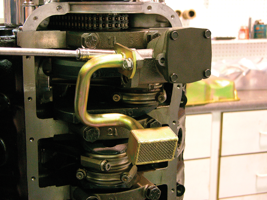 The oil galley passages are a full 1/2-inch, so they will handle all the oiling you need to route to the bearing and every other precious part that will hold these motors together under severe use. Note the fine machine work. This is a stock off-the-line production block, not one fixed up for photos.