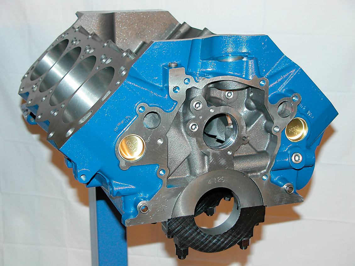 An added bonus with the “C” version of the 302-style block is that it’s available with mounting positions for the oil pump and distributor in the same location as the 351 blocks. With the standard Ford 302 blocks, interference with the oil pump keeps maximum displacement to about 347 ci. The MOW “C” blocks will allow a maximum of a 375ci 302.
