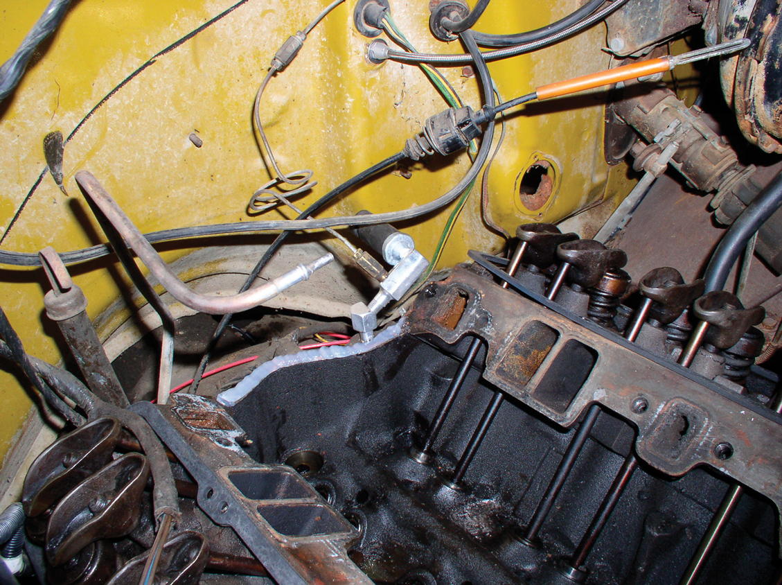 A 1/4-inch plug, found on the side of the block, is removed, and in its place will go the knock sensor. This is only for systems that are using a speed-density-type system. Be sure to mount the sensor away from the spark plug wires, because the electrical pulses running through the lead wires can cause the knock sensor to give false readings to the computer.