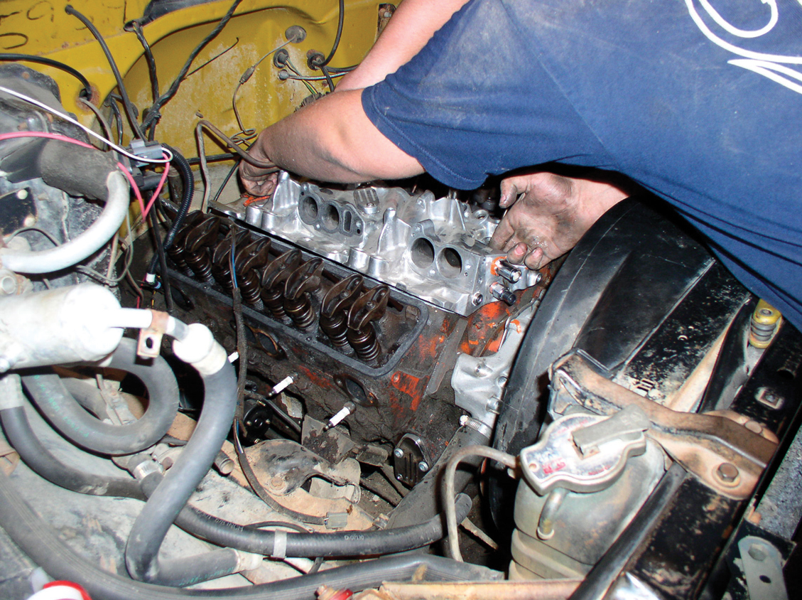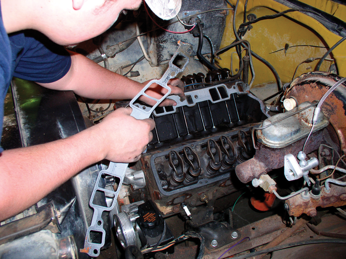 To get the new intake manifold to seal well, the heads need to be cleaned of any old gasket material.