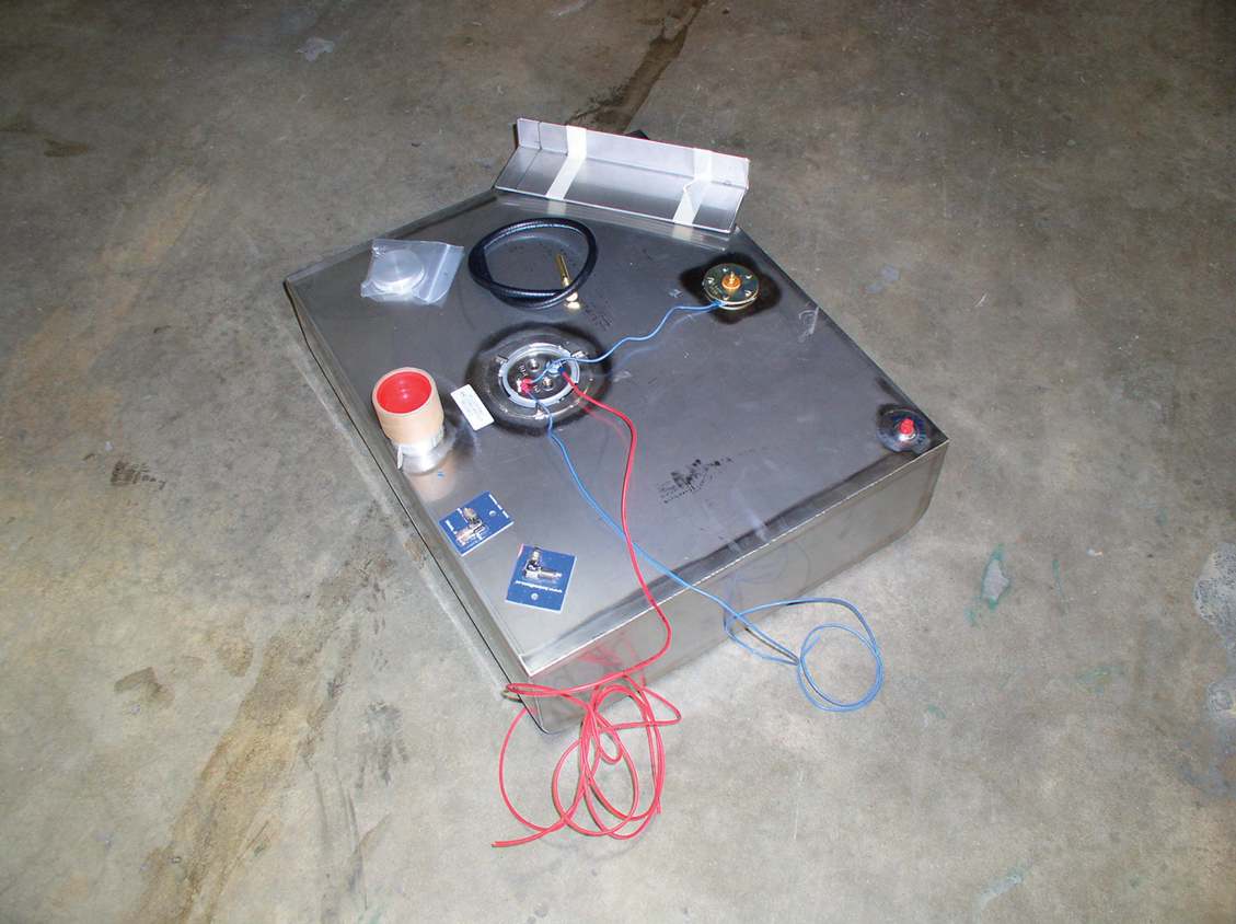 Because an EFI system is a closed system, the stock tank won’t really work with it. Besides, the fuel pressure needed to operate an EFI system is greater than that of a stock system. Either way, the stock tank has to go. Rock Valley makes an aluminum tank that is equipped with an internal EFI-rated fuel pump. The new tank fits between the framerails, so it is a bolt-in proposition.